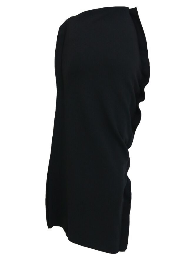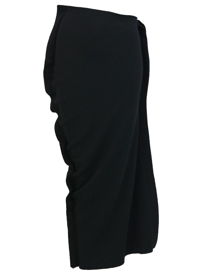 A skirt from Rundholz in the color black. The fabric is stitched upside down on the n side. The skirt can be slightly pulled up on one side, creating a nice pleat effect. This skirt may not be washed.