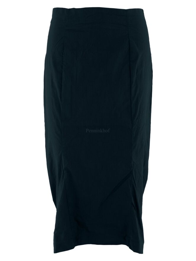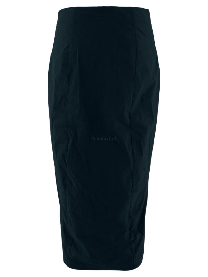 A skirt from Rundholz black label in petrol blue. At the waist, the skirt is elasticated. The skirt is tapered and unlined. This skirt may be washed at 30 degrees.