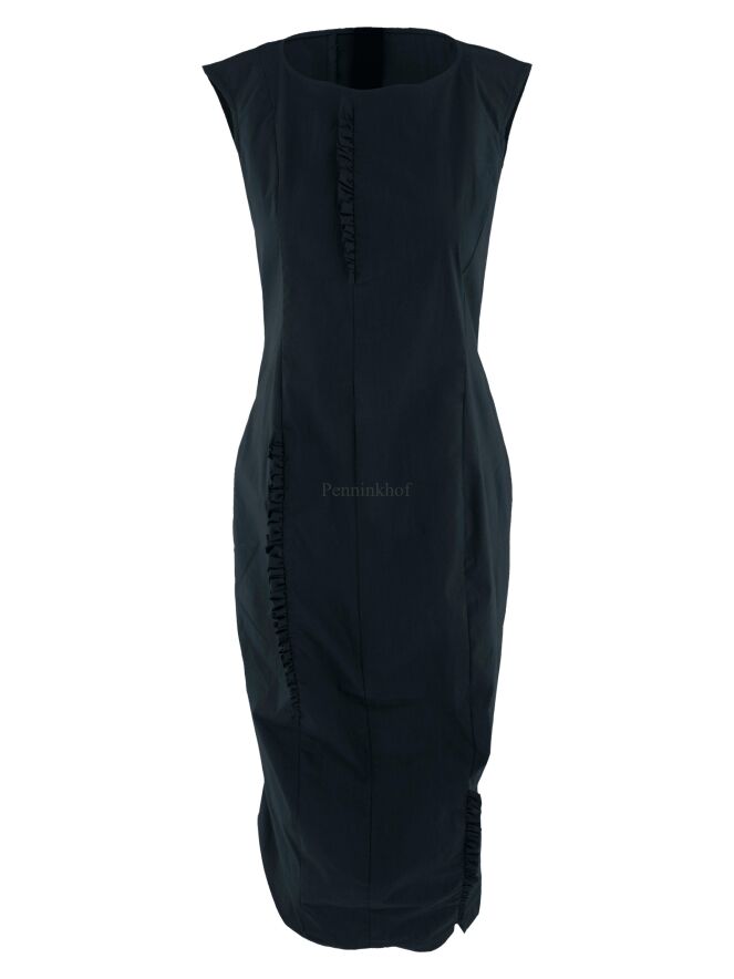 A dress from Rundholz black label in petrol blue. There are smocked piping in several places along the seams at the front and back.The dress tapers and is unlined. This dress may be washed at 30 degrees.