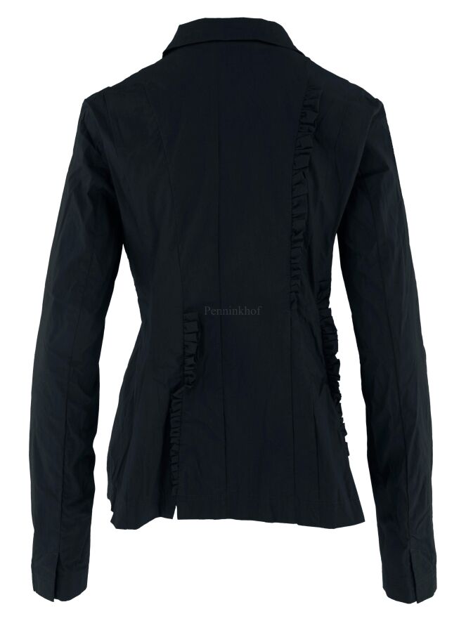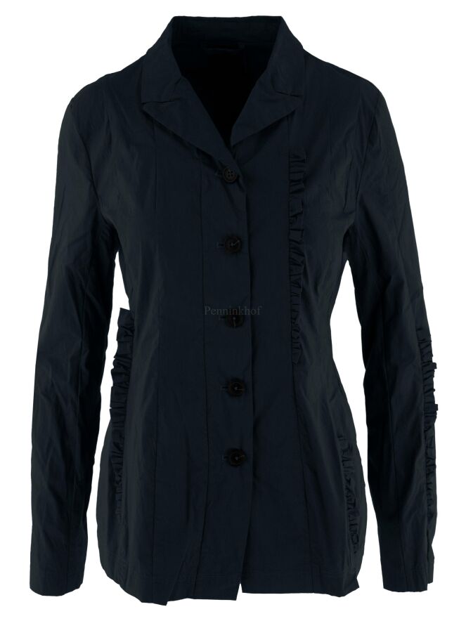 A blazer from Rundholz black label in petrol blue. There are smocked piping in several places along the stitching seams at the front and back.At waist level, side pockets and the blazer is unlined. This blazer can be washed at 30 degrees.