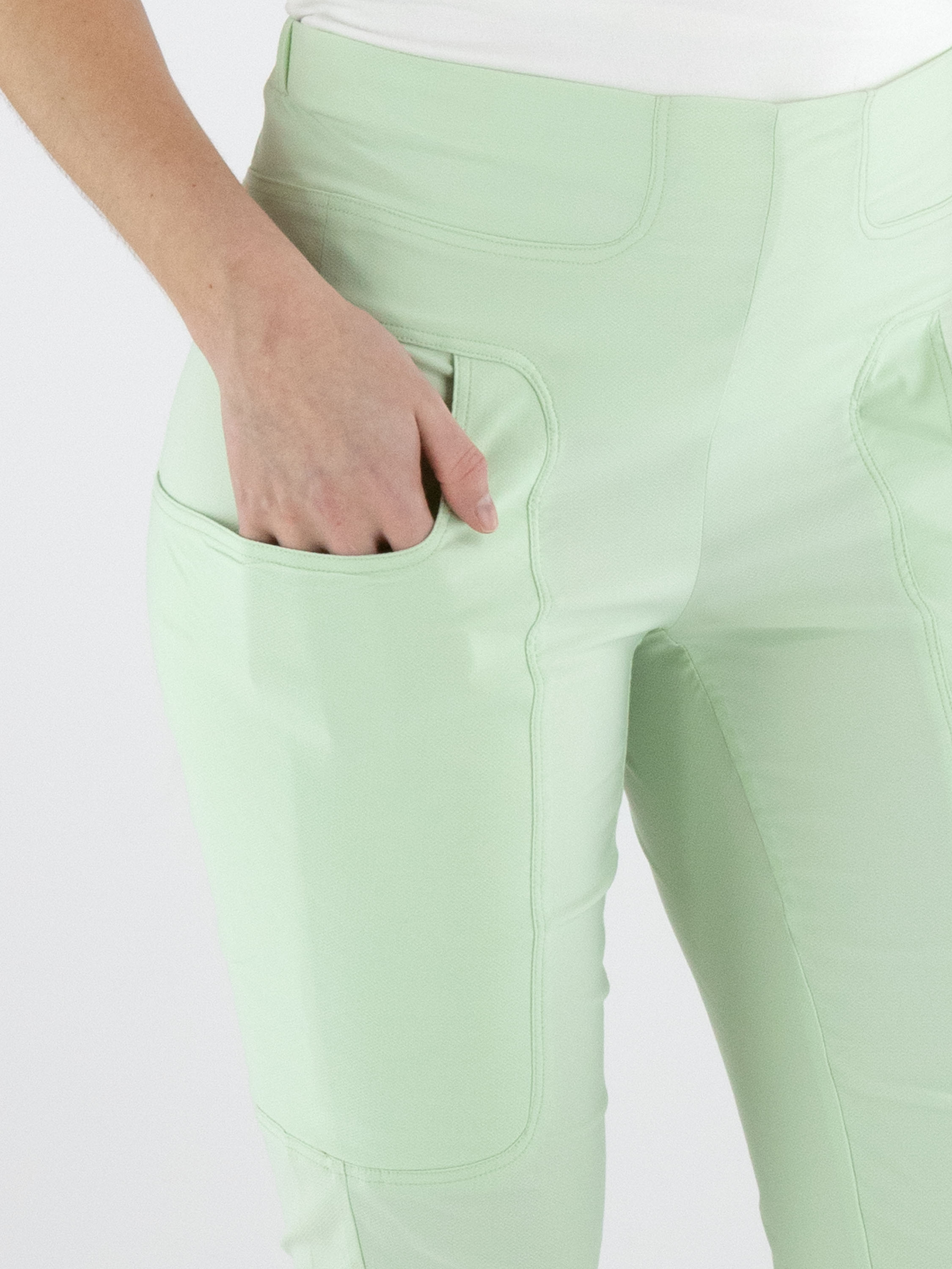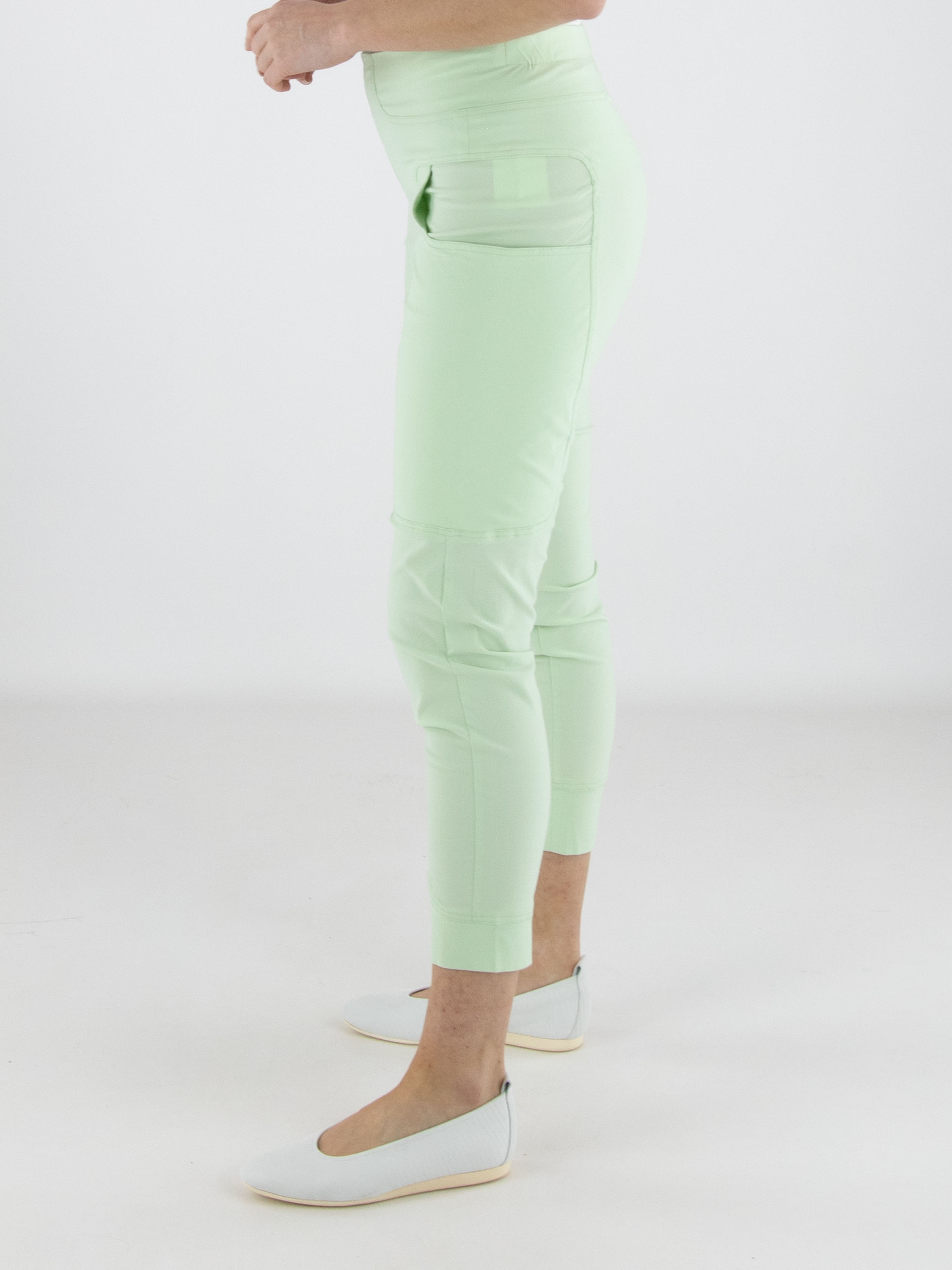 Trousers by Rundholz Black Label in a fresh pistachio green shade. The elastic waistband ensures a comfortable and relaxed fit. The slightly lowered side pockets add a casual yet contemporary touch to the design. These exclusive designer trousers can be washed at 30 degrees.
