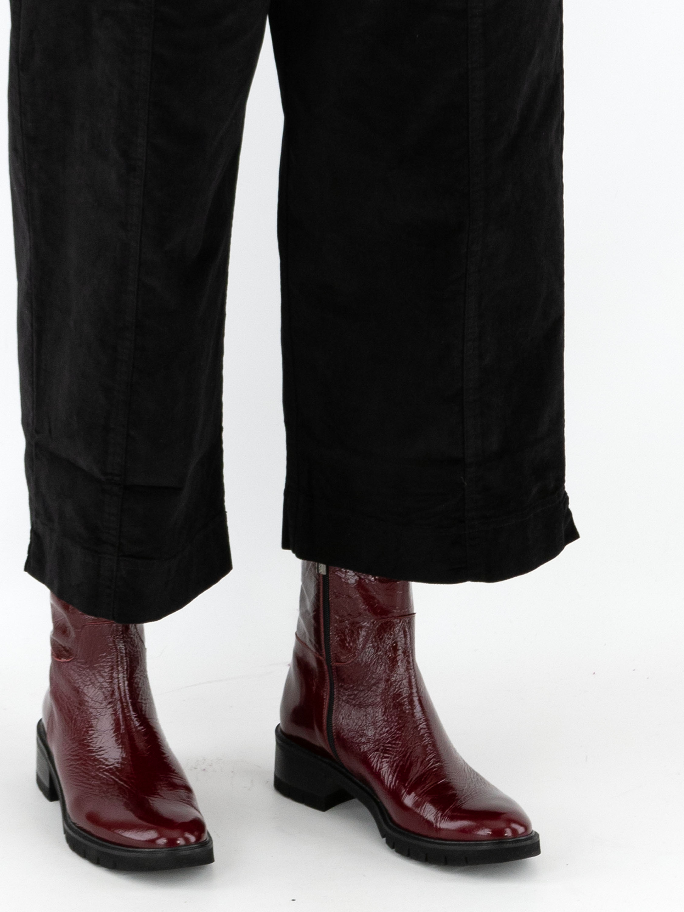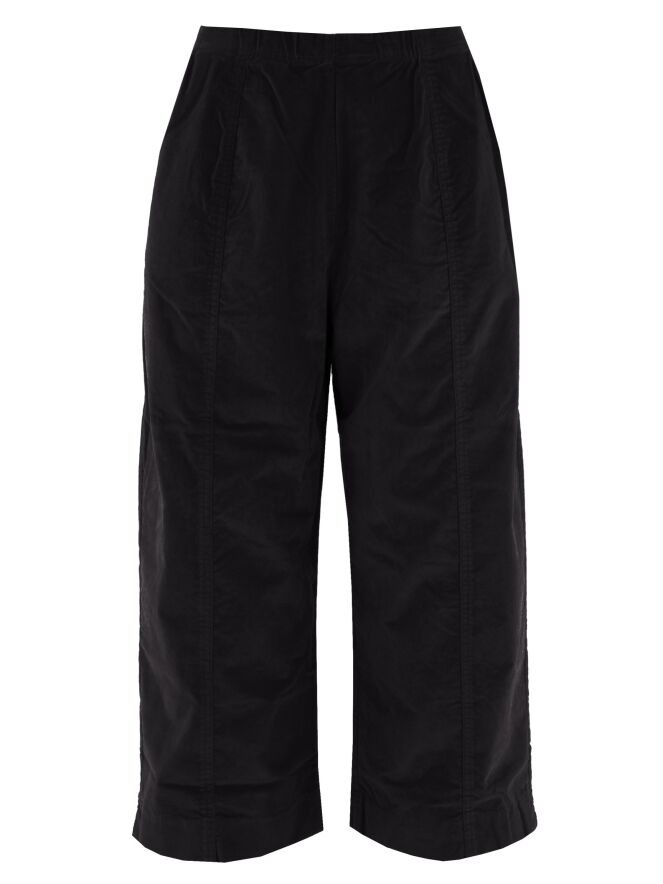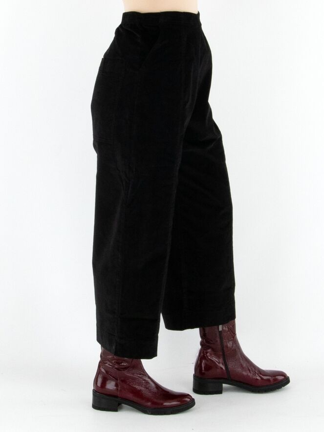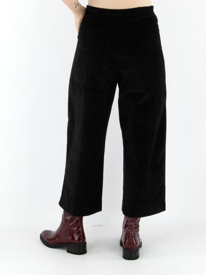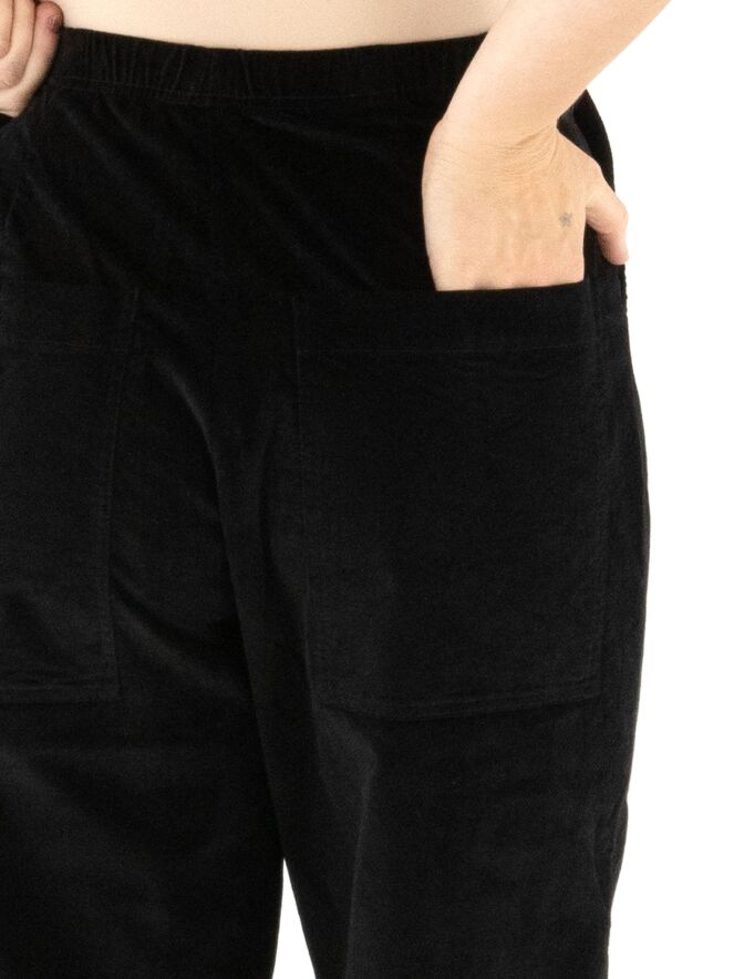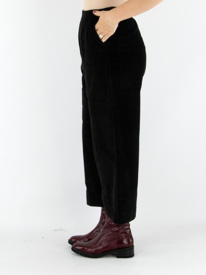 A straight-cut velour trouser by Rundholz Black Label in black. The waistband is elasticated. The trousers feature side pockets and can be washed at 30 degrees.