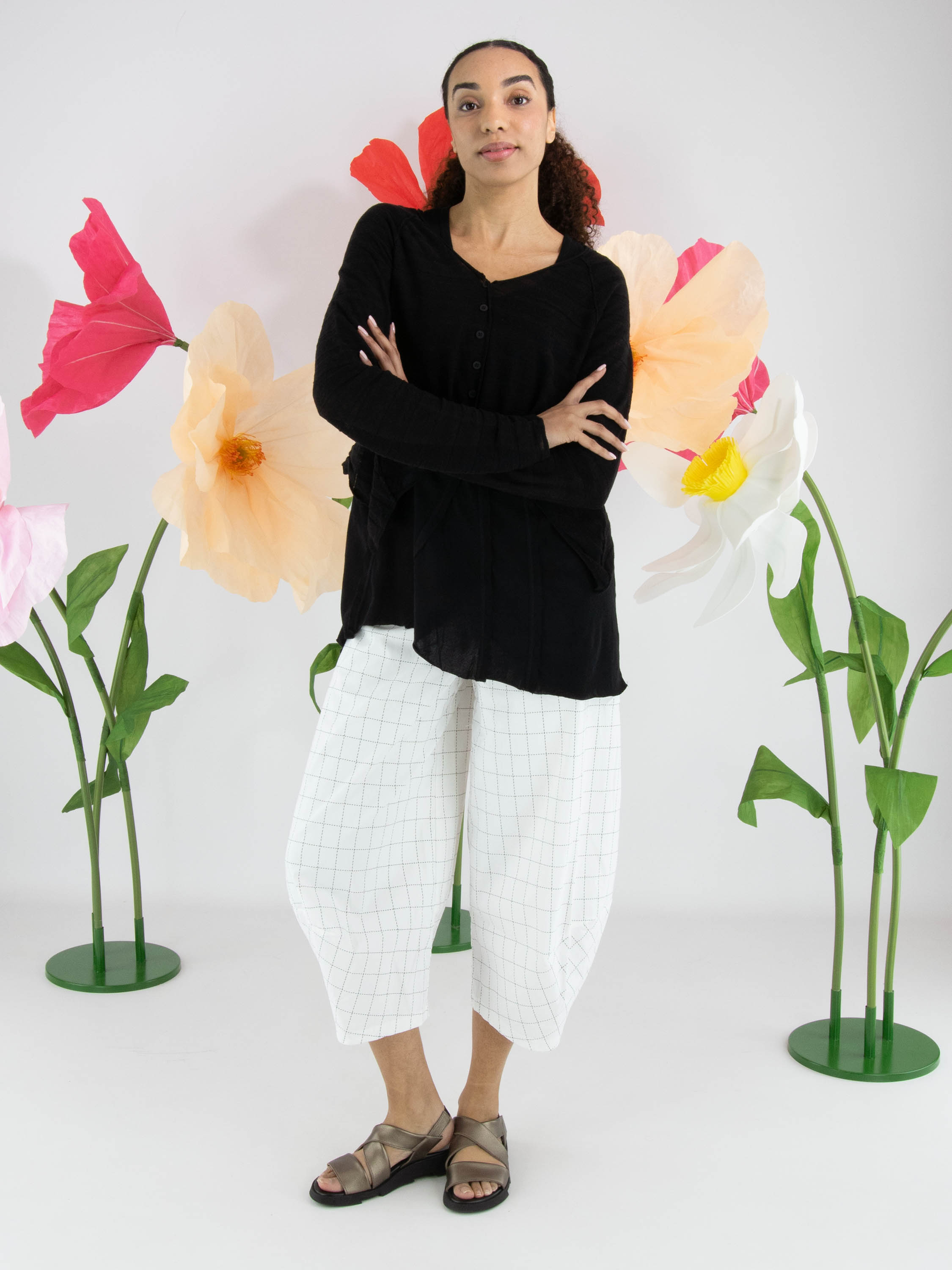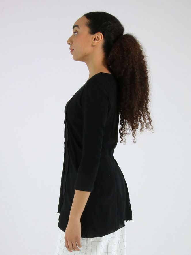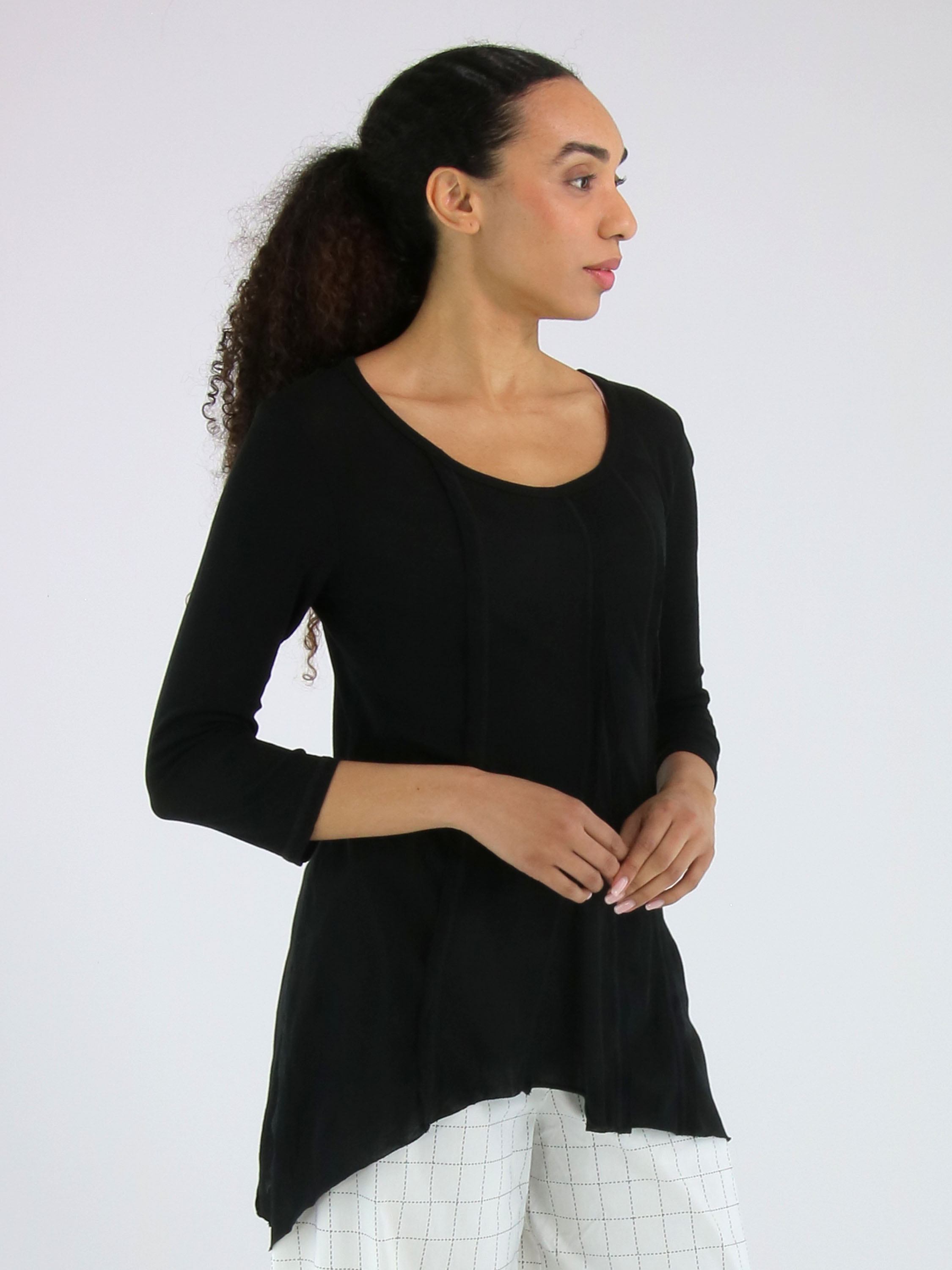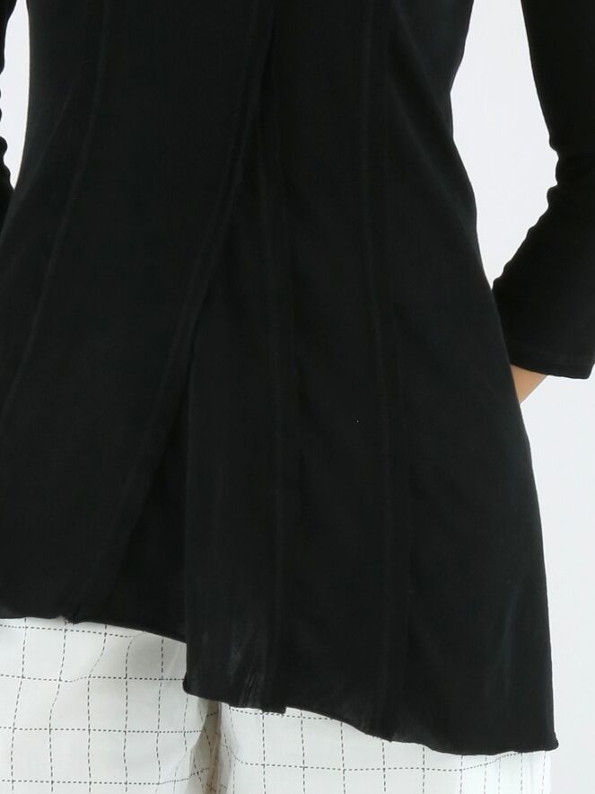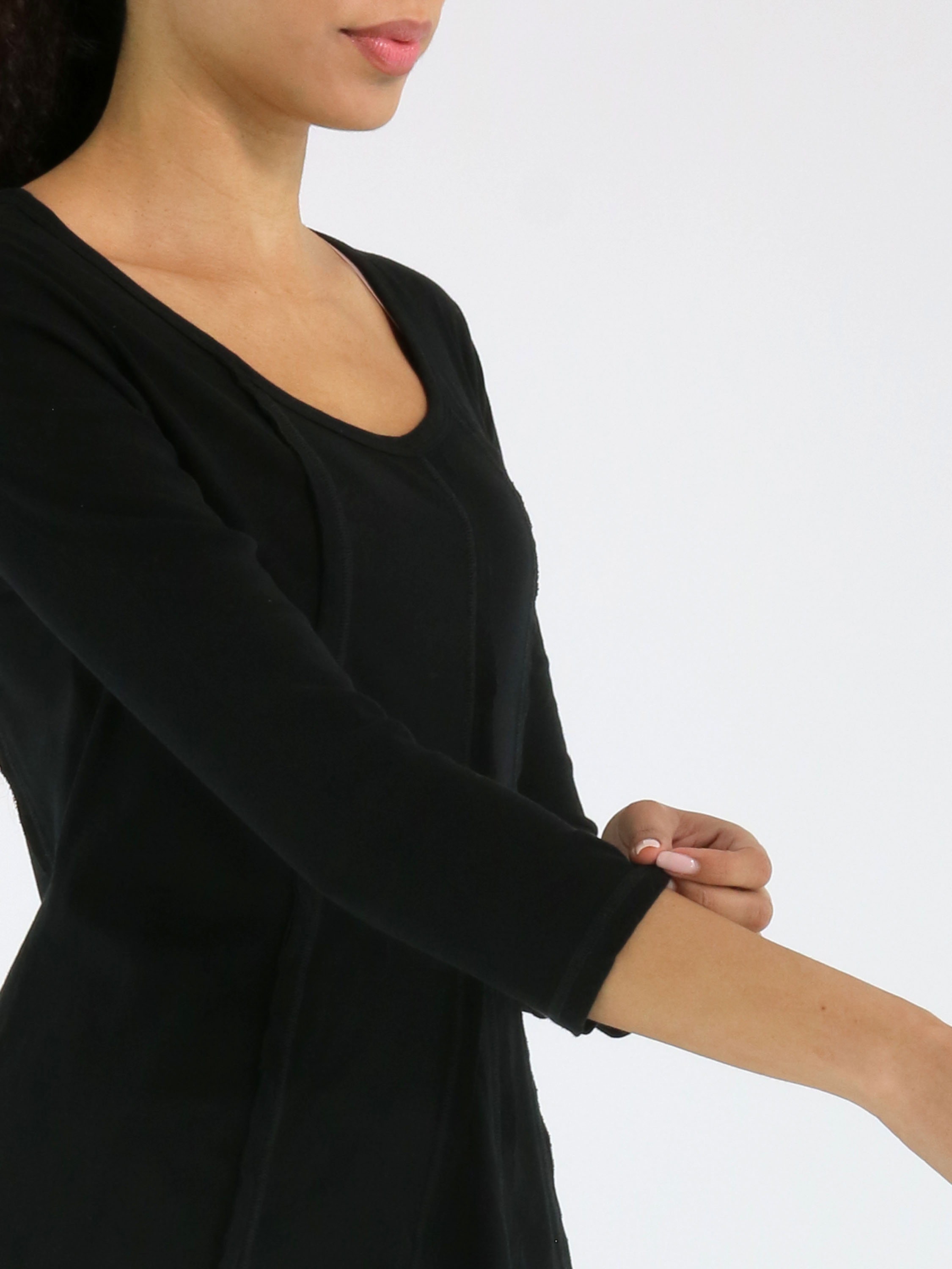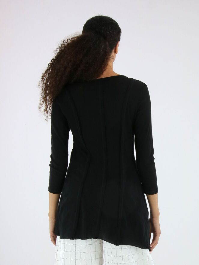 Slim-cut shirt by Rundholz Black Label in black. Three inverted seams are placed on both the front and back, adding a subtle architectural edge to the design. Featuring a round neckline and mid-length sleeves, this exclusive designer shirt can be washed at 30 degrees.