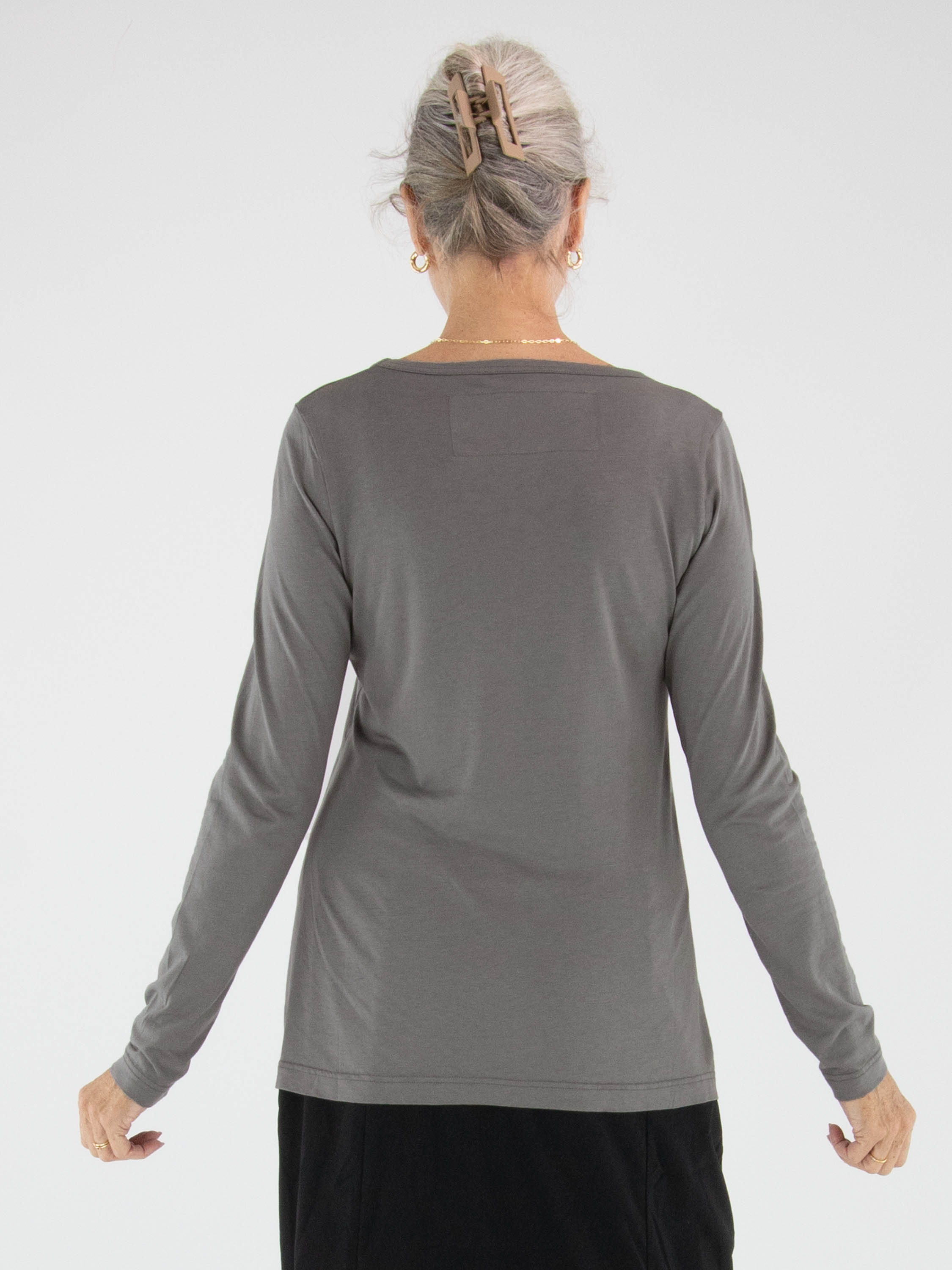 A shirt from Rundholz Black Label in grey. The design features a round neckline and long sleeves. This shirt can be washed at 30 degrees.