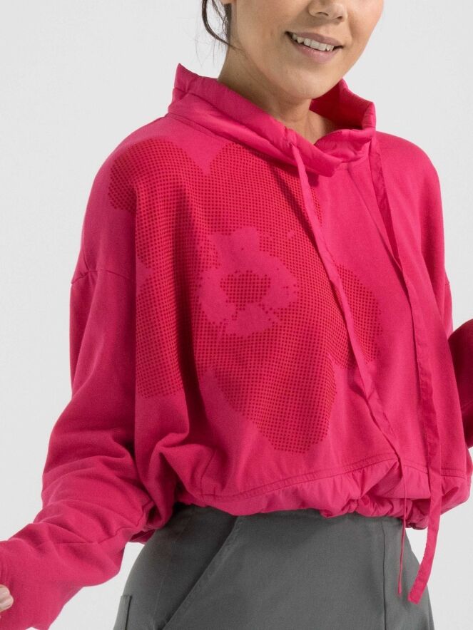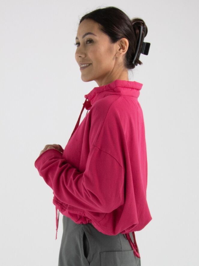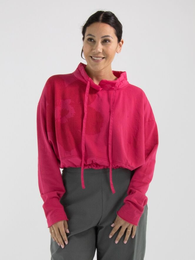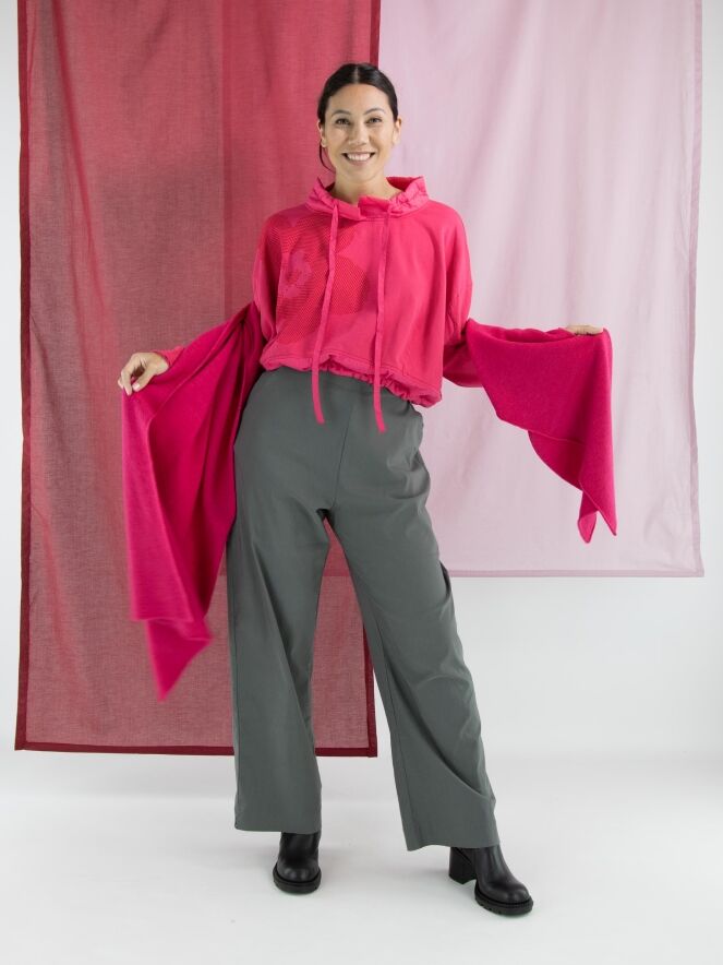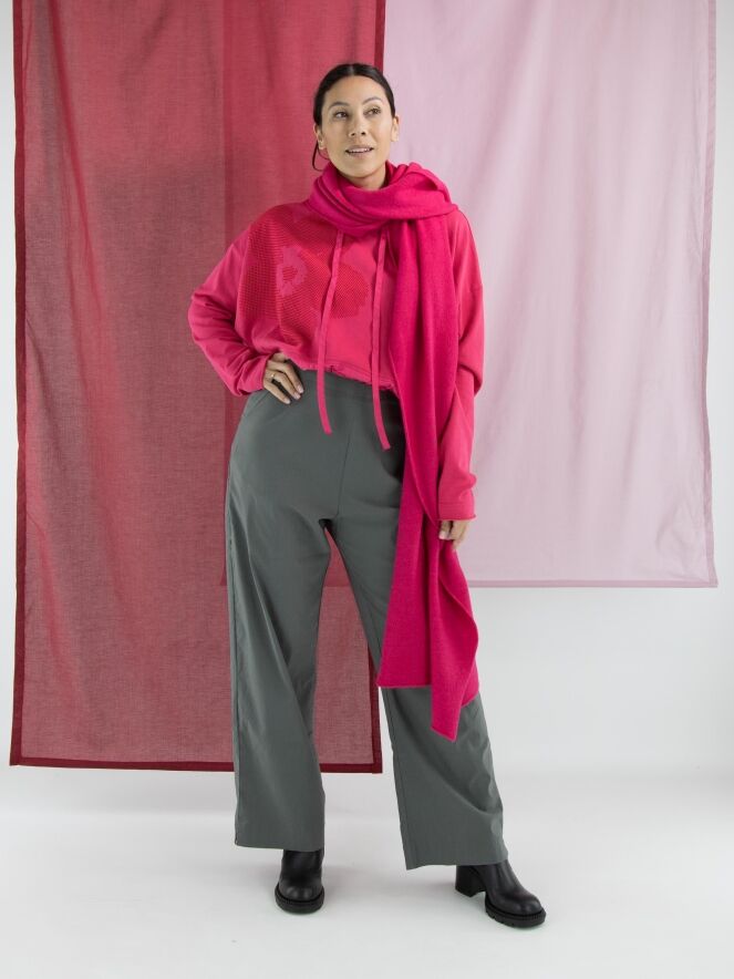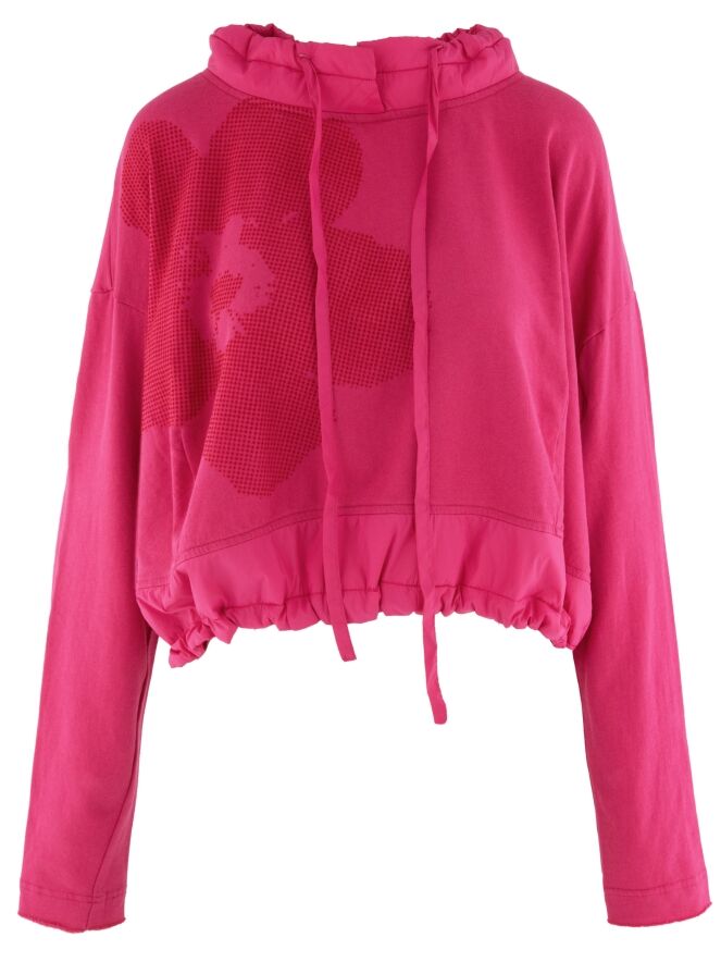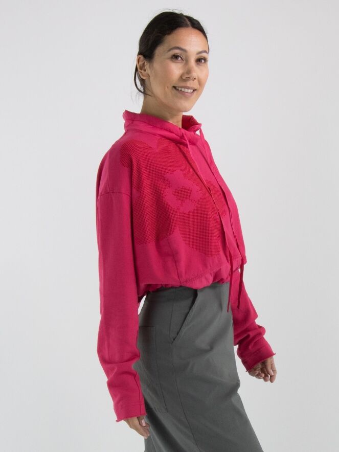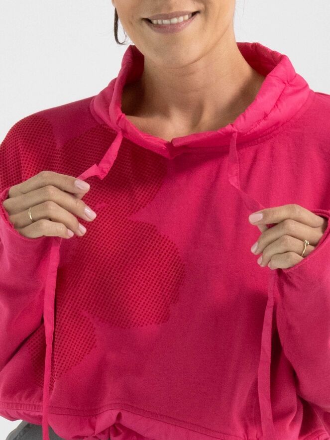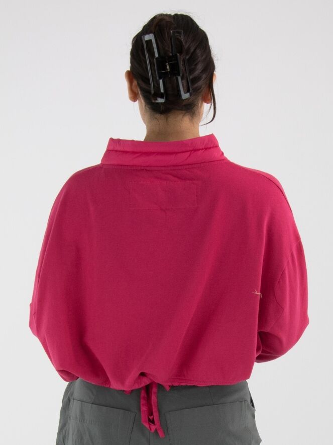 A shirt by Rundholz Black Label in pink. Along the neckline, a trim in parachute fabric with a tunnel drawstring is designed in the same pink color. This trim with drawstring is repeated at the hem. The shirt can be washed at 30 degrees.