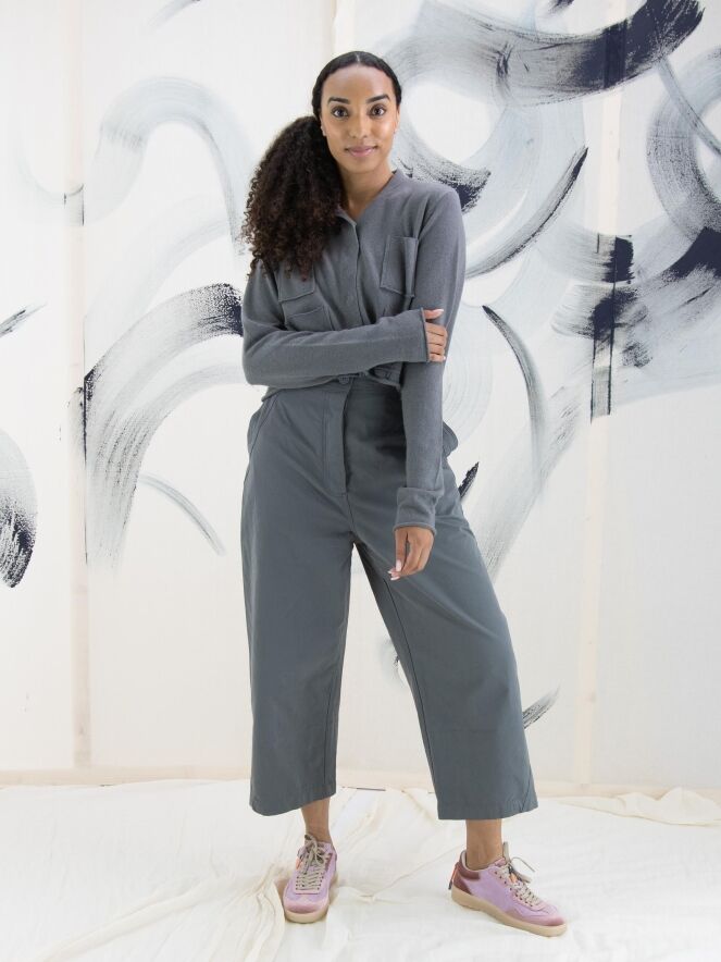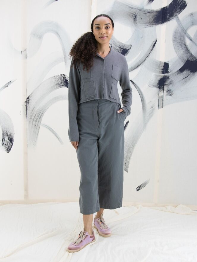 A wide, straight-cut pants by Rundholz Black Label in gray color. The pants have slit pockets and can be washed at 30 degrees.