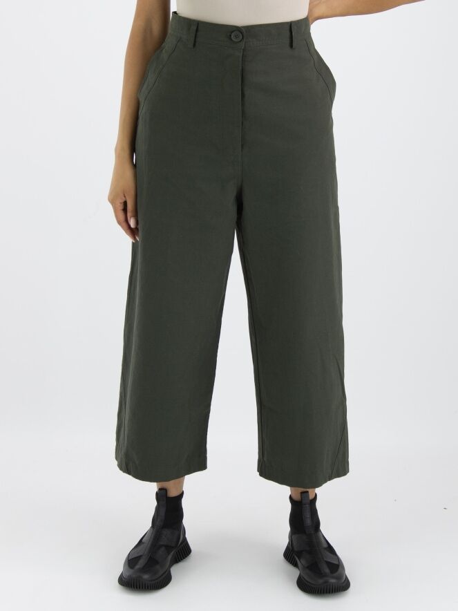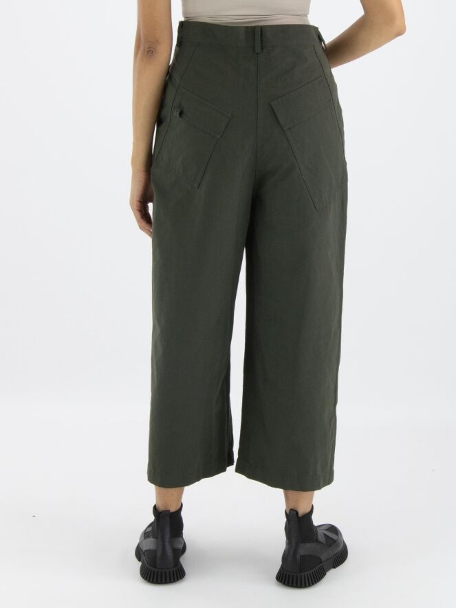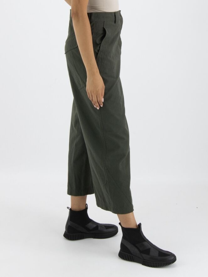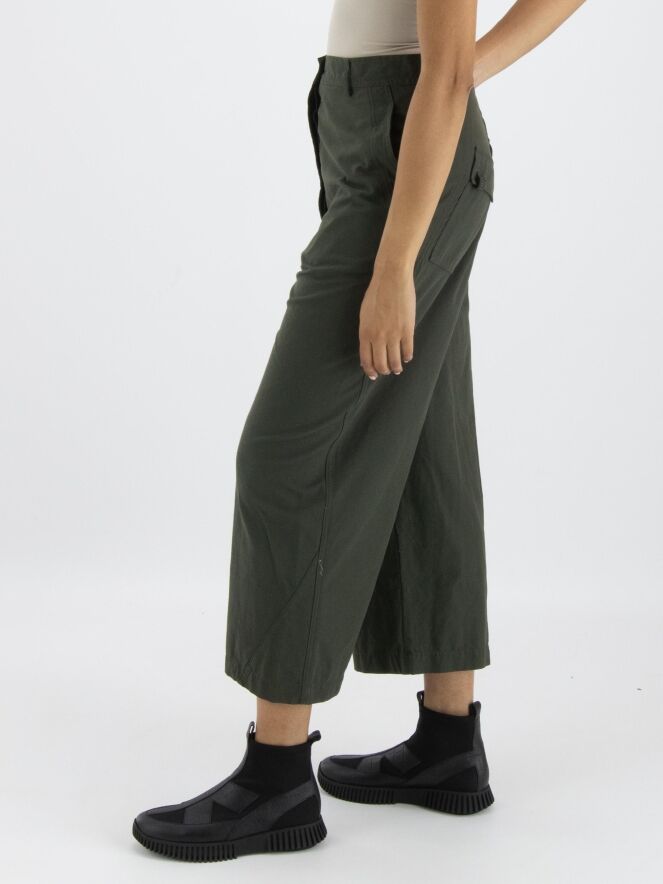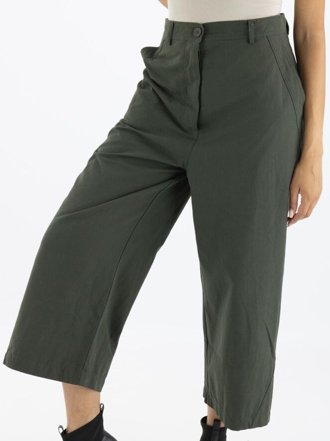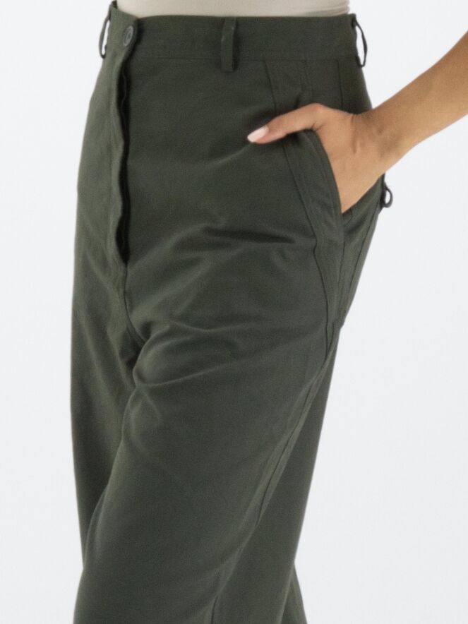A wide, straight-cut pants by Rundholz Black Label in khaki color. The pants have slit pockets and can be washed at 30 degrees.