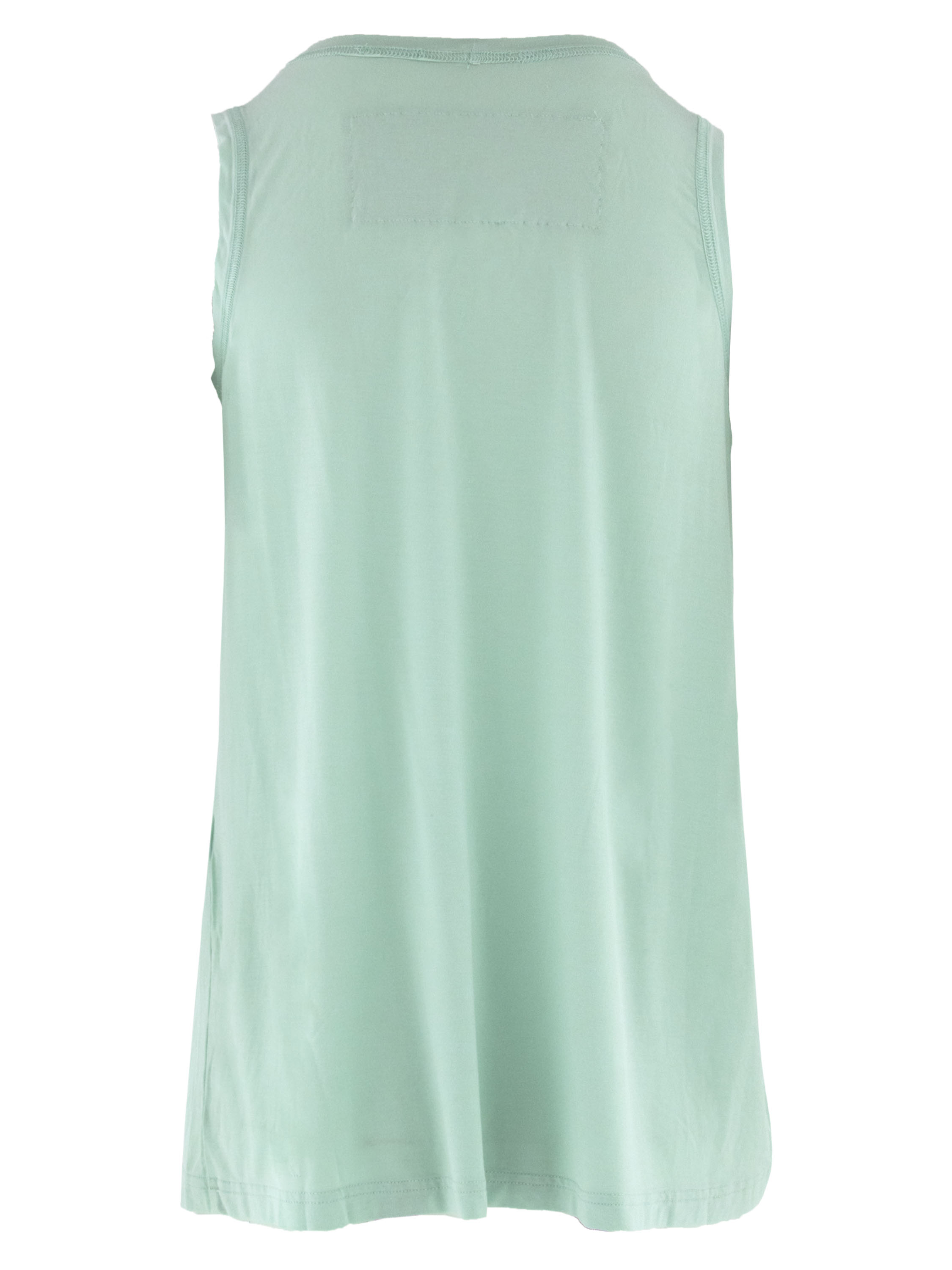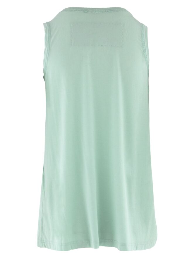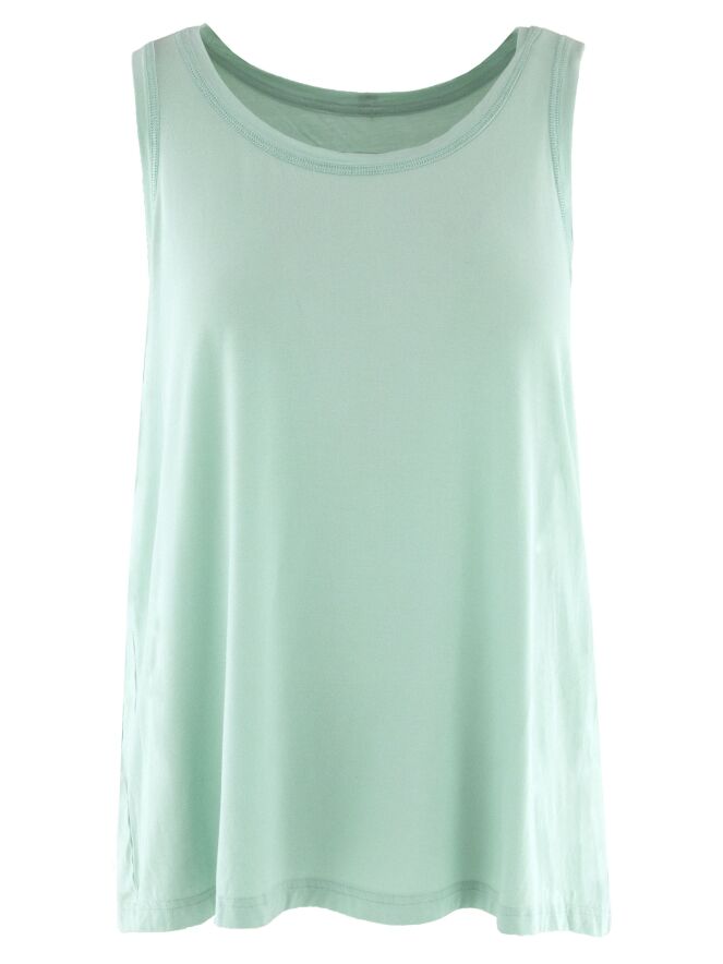 Top by Rundholz Black Label in a fresh mint green shade. The design features a wide round neckline and a subtle A-line shape, creating a fluid and contemporary silhouette. The shoulder straps are approximately 3 cm wide. This top can be washed at 30 degrees.