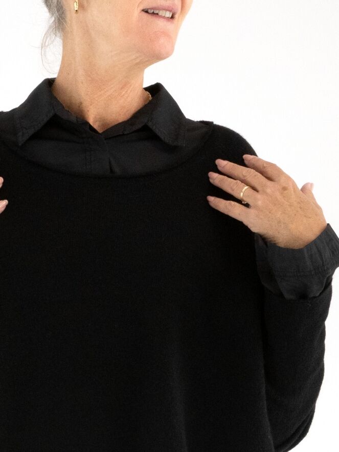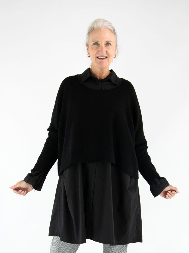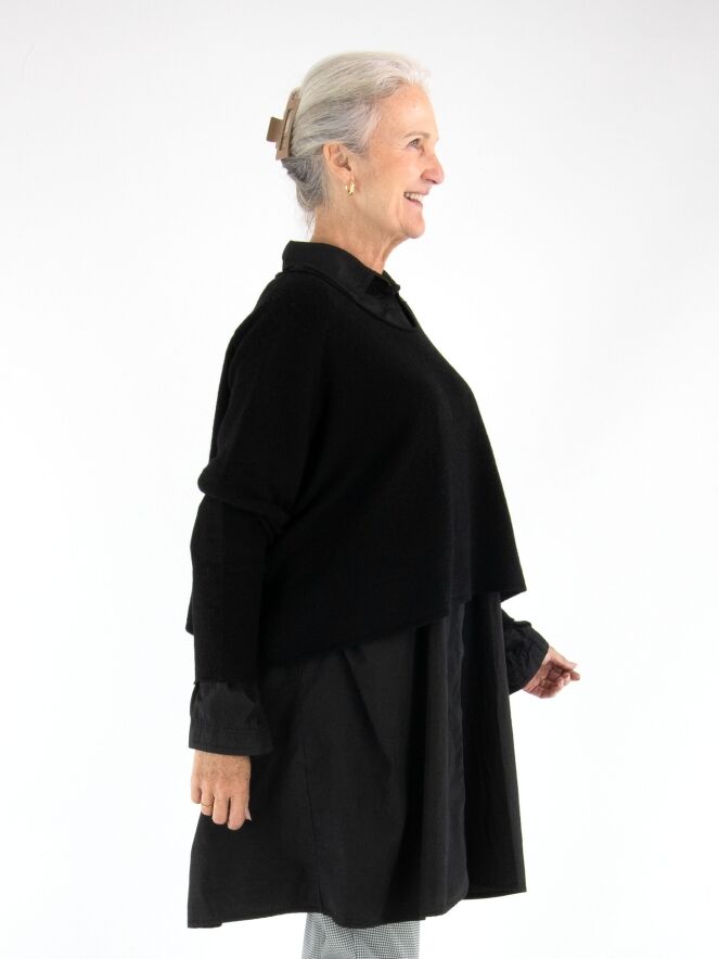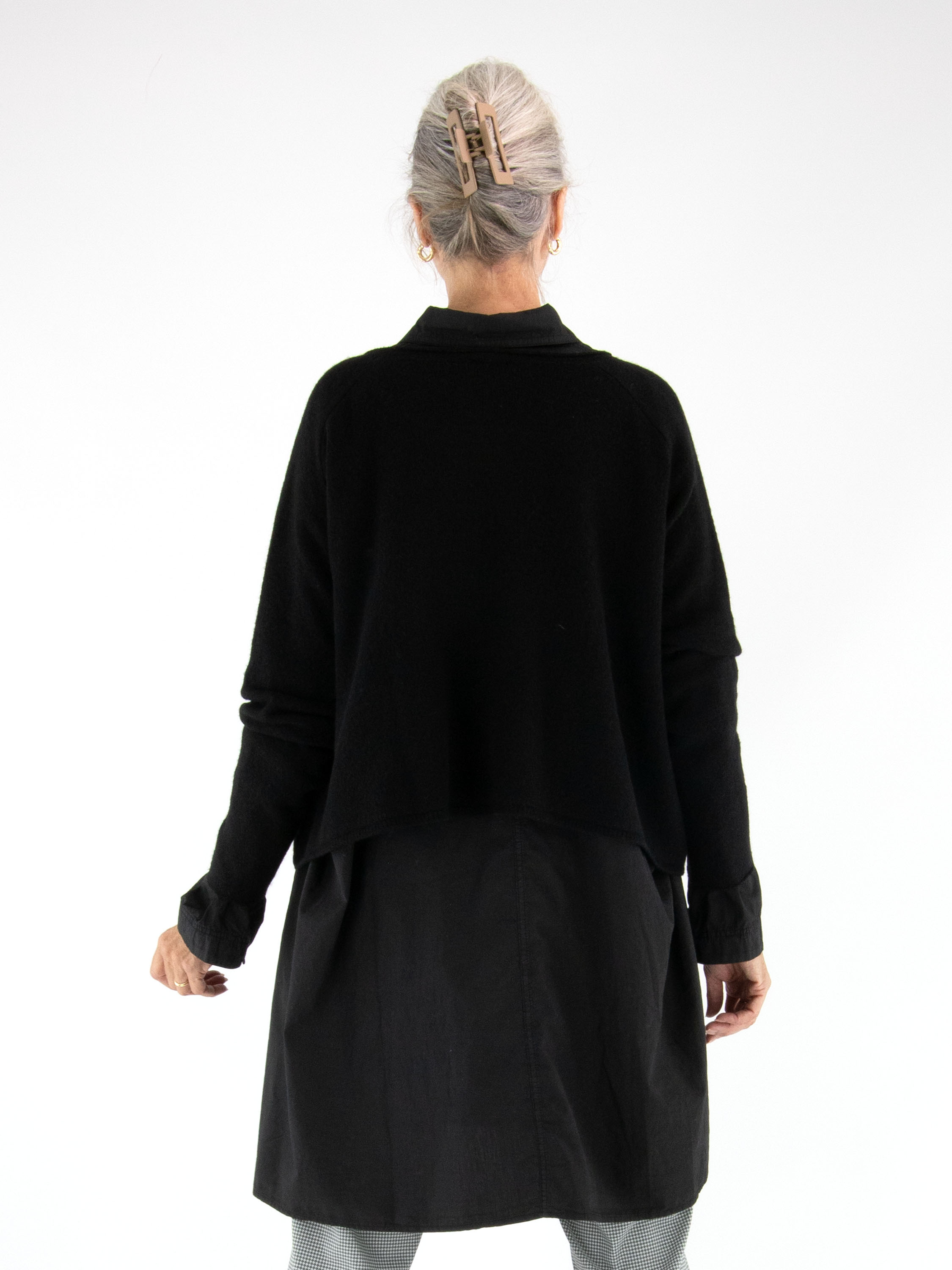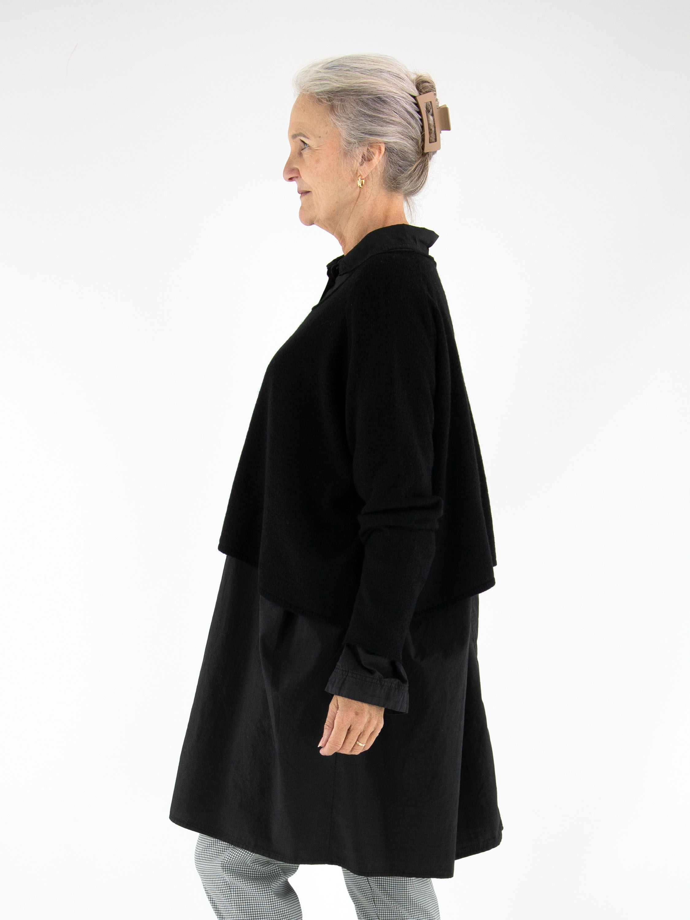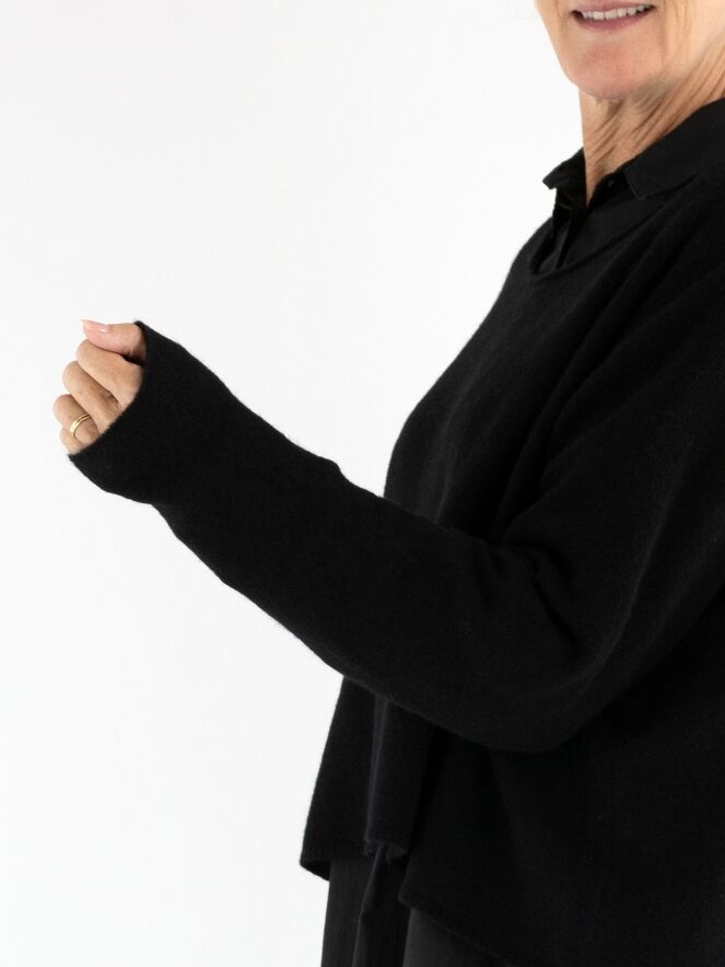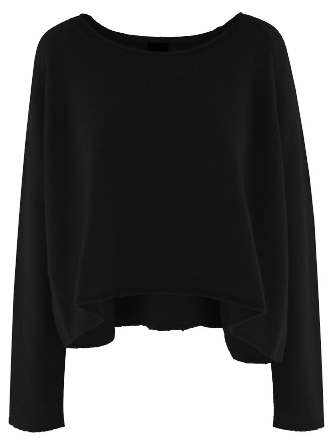 A loose, cropped pullover by Rundholz Black Label in black. Featuring a round neckline and long sleeves, this pullover should be hand washed.