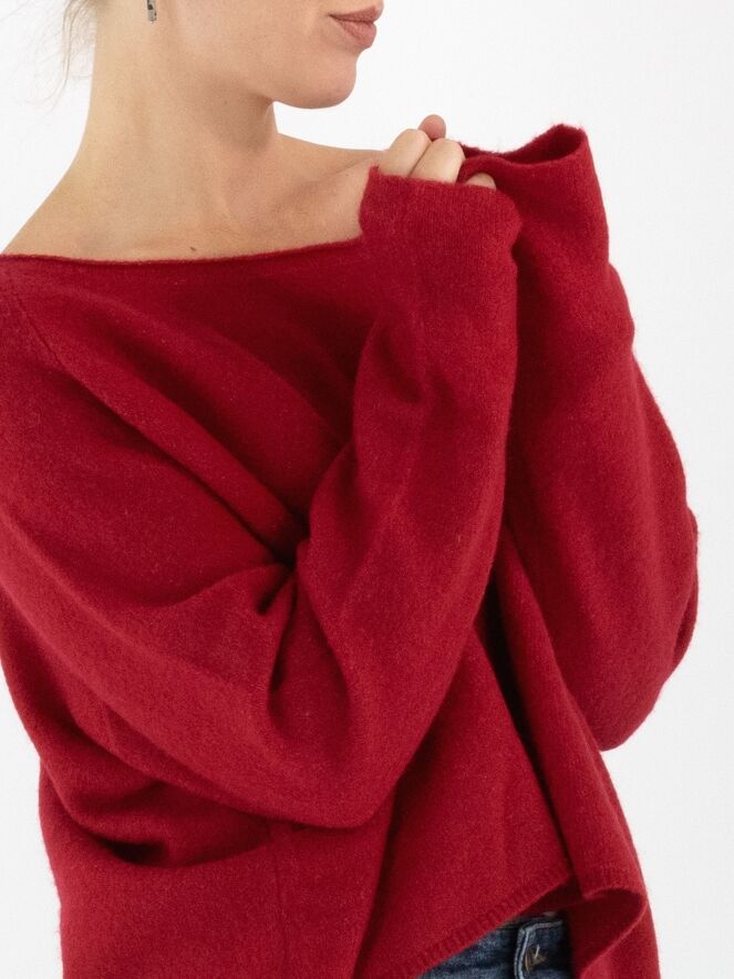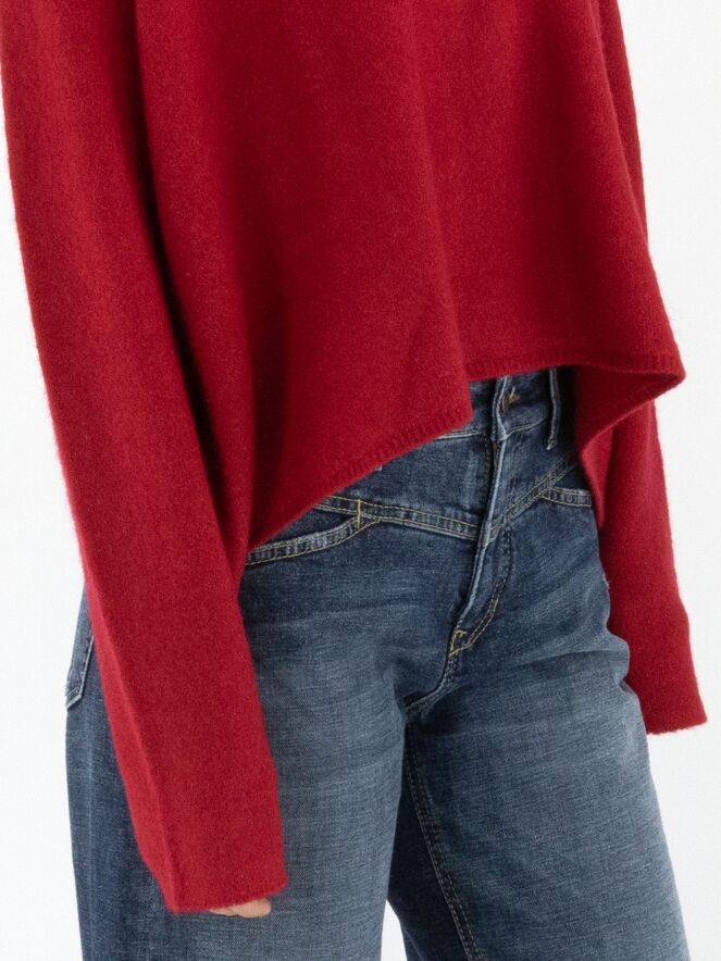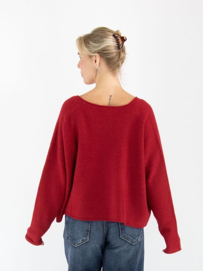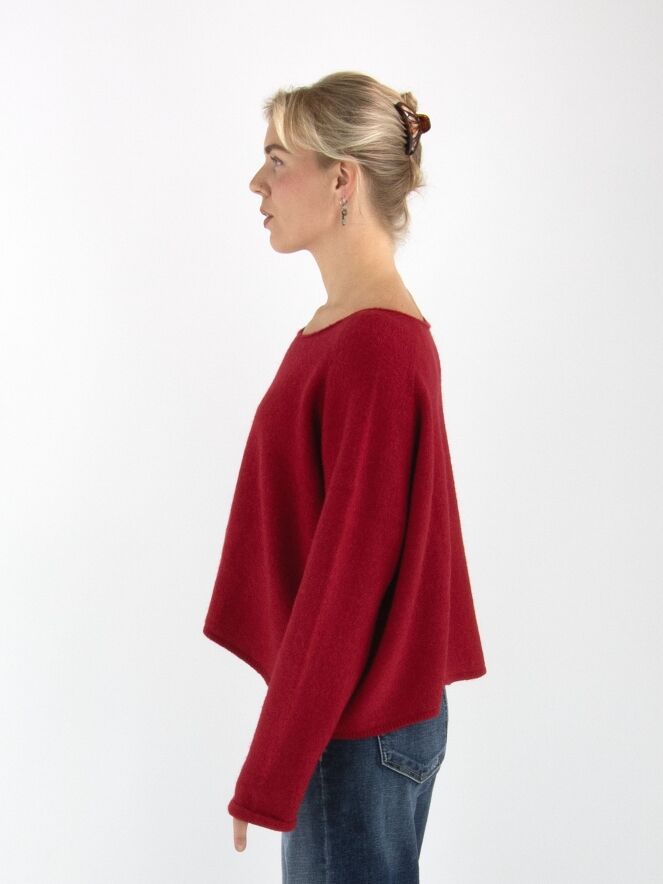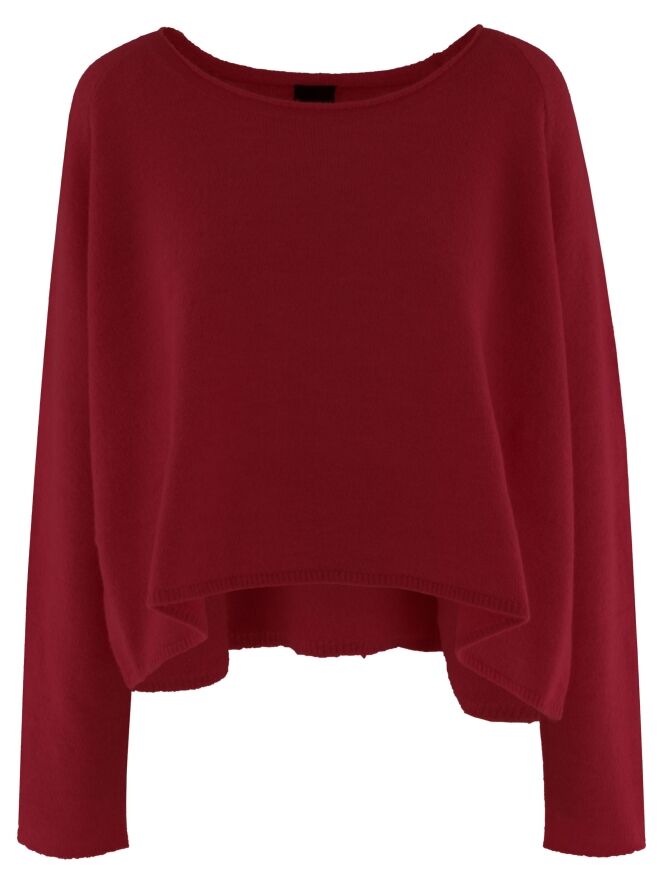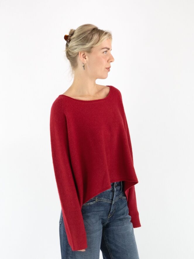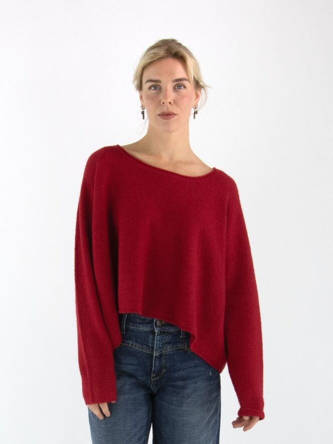 A wide, cropped pullover by Rundholz Black Label in red. Featuring a round neckline and long sleeves, this pullover must be hand-washed.