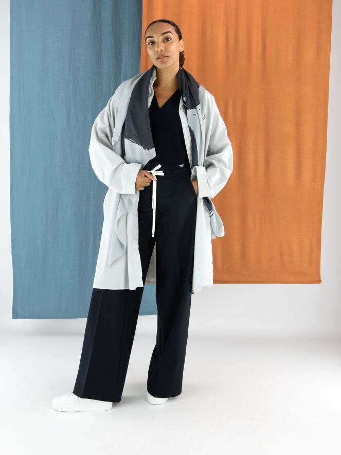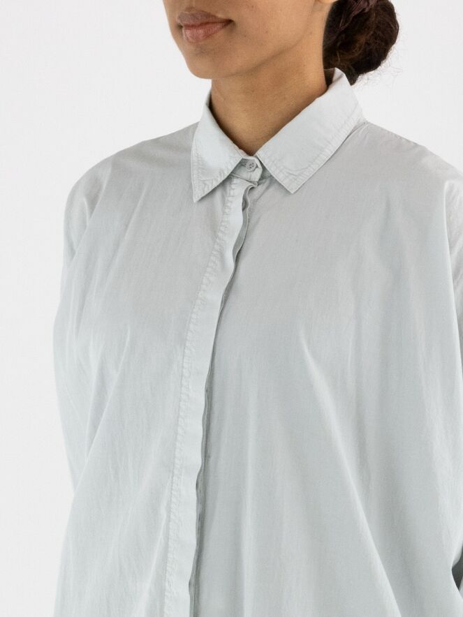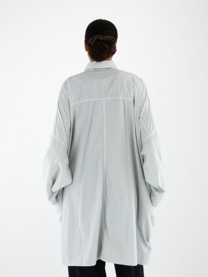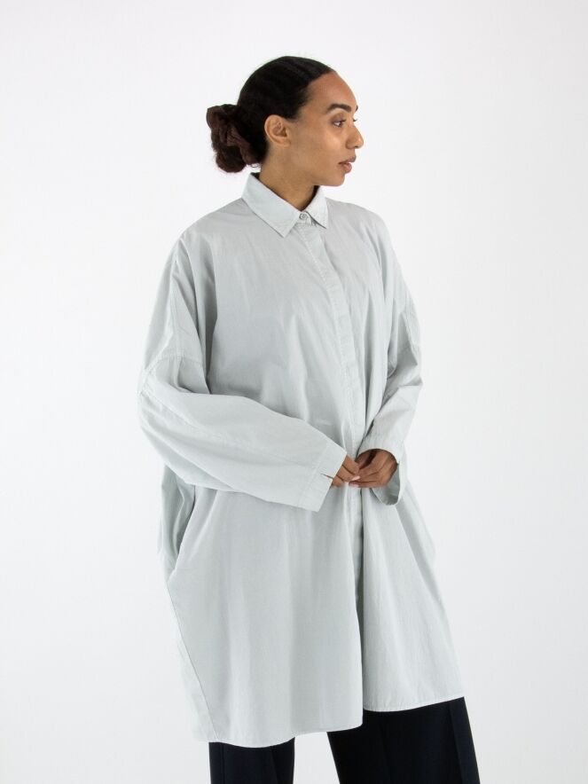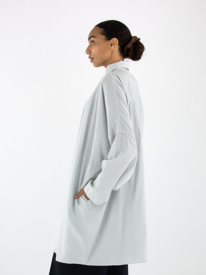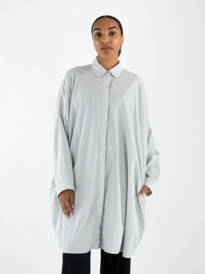 A loose, long blouse by Rundholz Black Label in light grey. It features a concealed button placket and can be washed at 30 degrees.