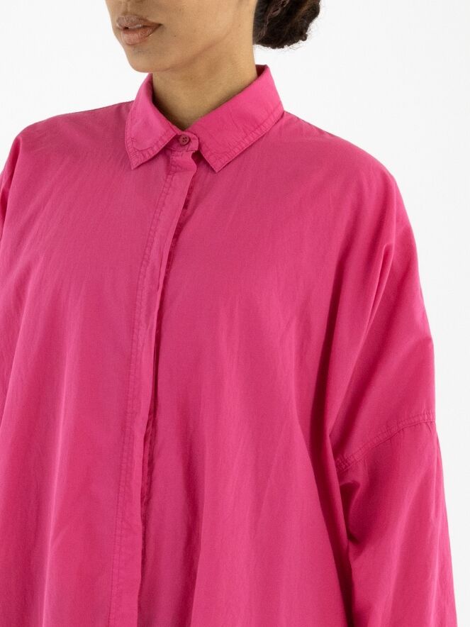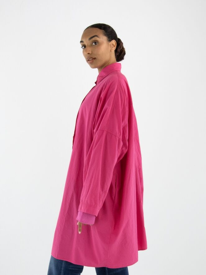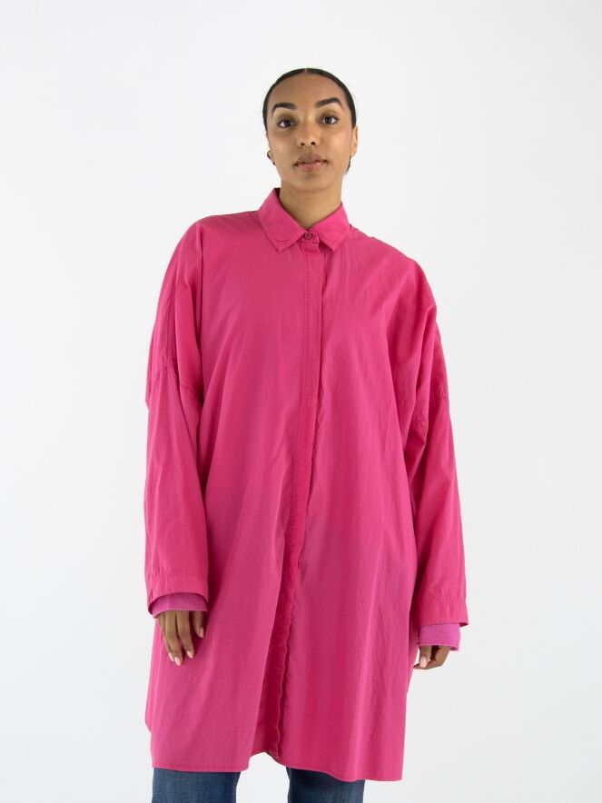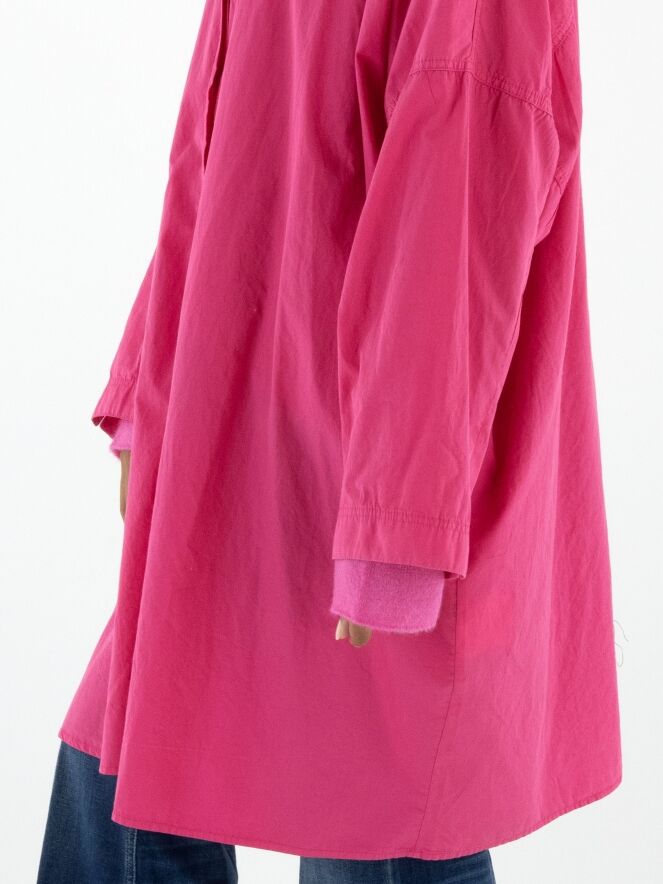 A loose, long blouse by Rundholz Black Label in pink. It features a concealed button placket and can be washed at 30 degrees.