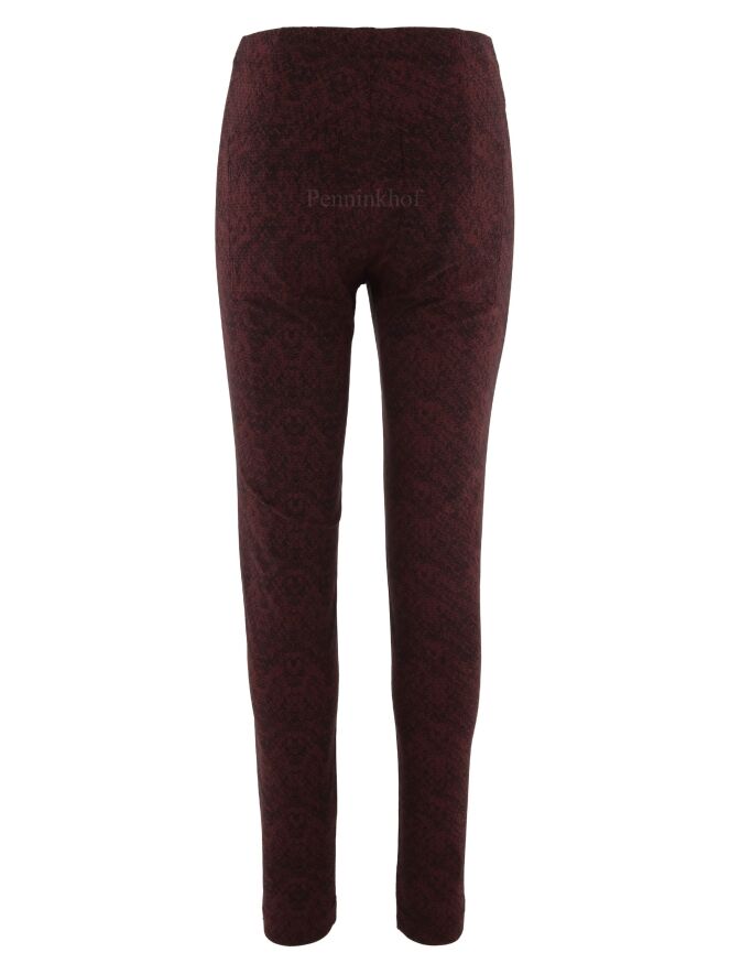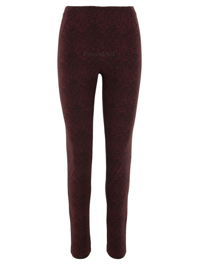 Leggings by Rundholz black label in a print with the colors burgundy red and black. At the waist is an elastic band. These leggings can be washed at 30 degrees.