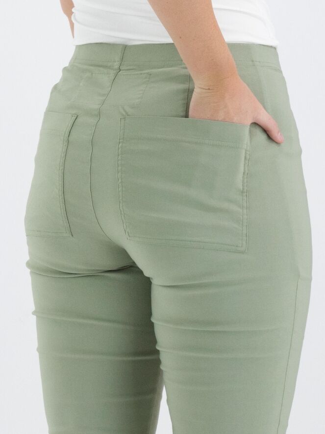 A legging by Rundholz Black Label in olive green color. The waistband features an elastic band. These pants can be washed at 30 degrees.