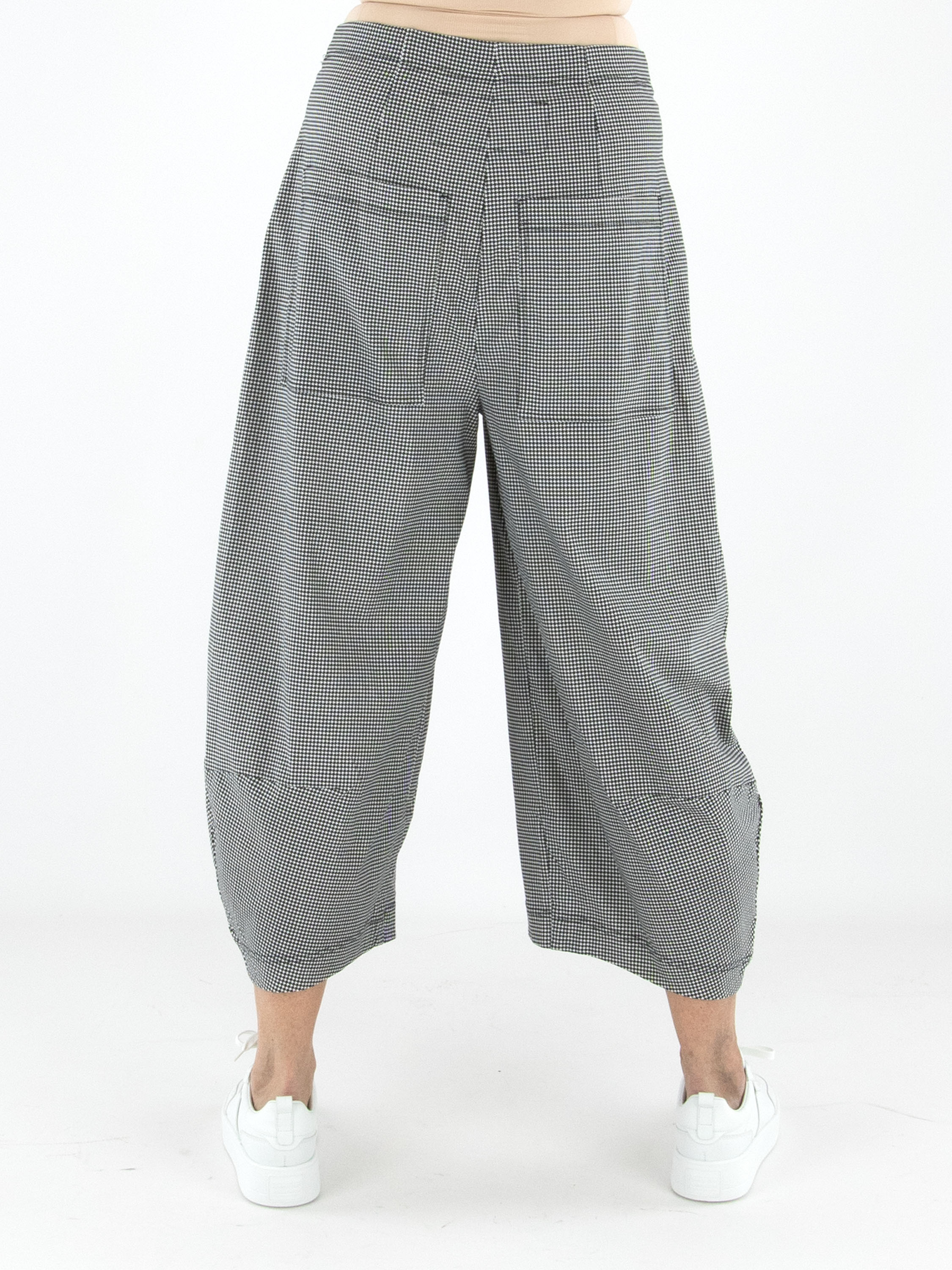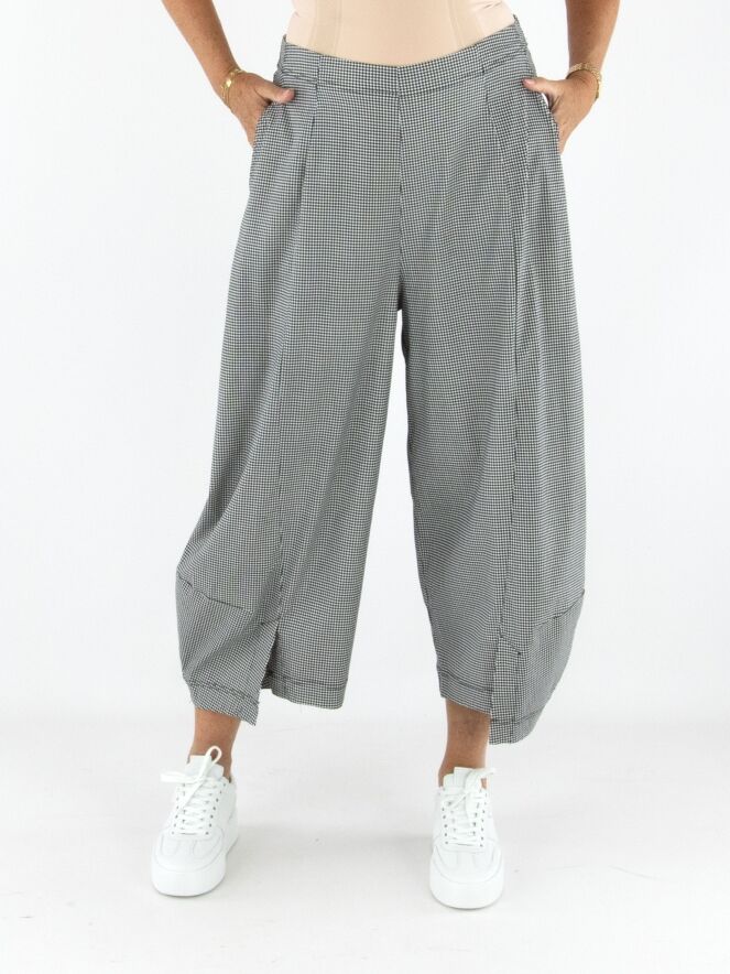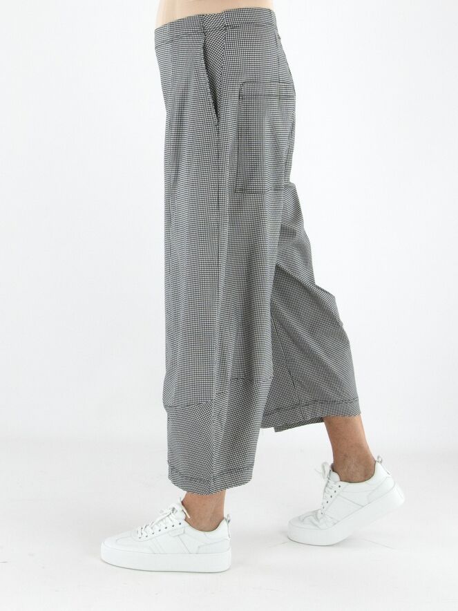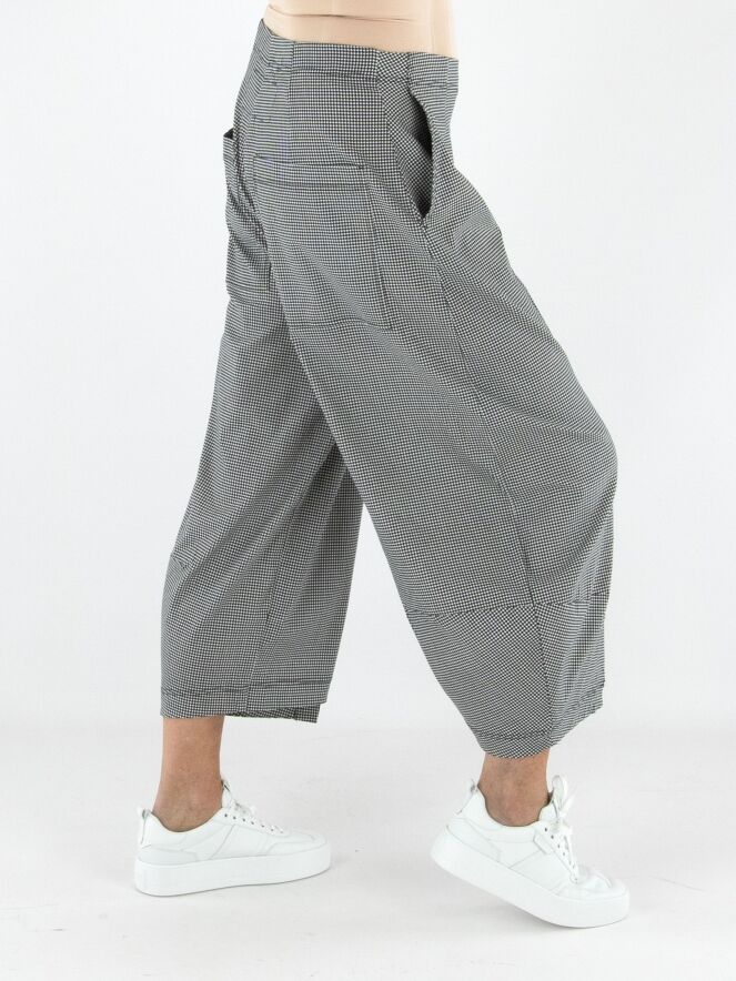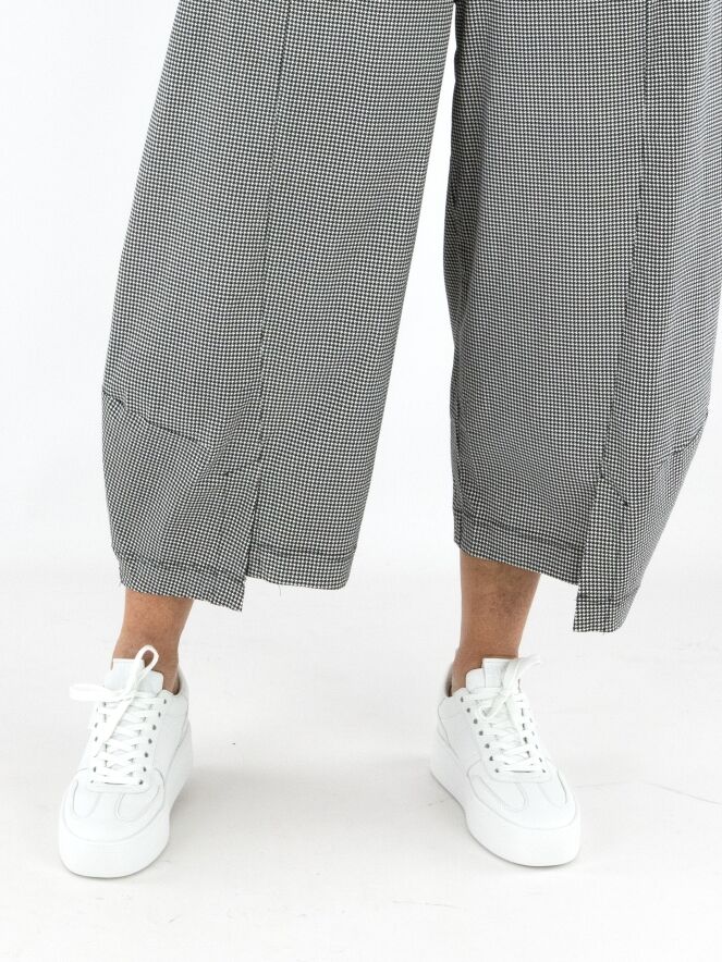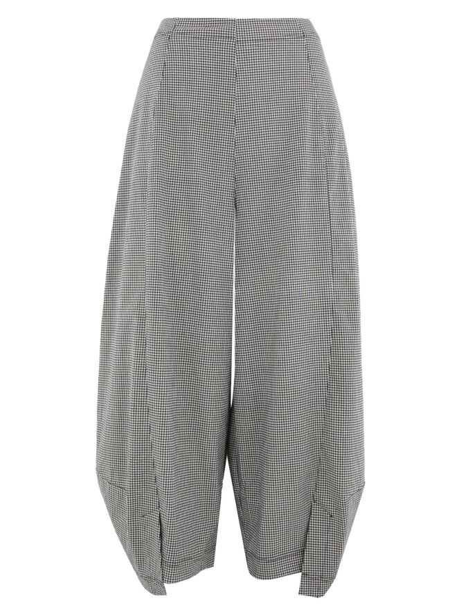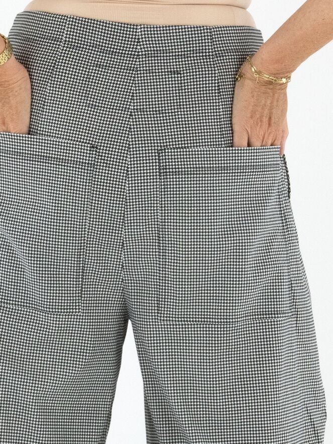 Trousers from Rundholz in a pied-de-coq print in black and off-white. The waistband is elasticated for added comfort. The trousers feature practical slit pockets and taper towards the hem, giving the design a modern shape. These trousers can be washed at 30 degrees.