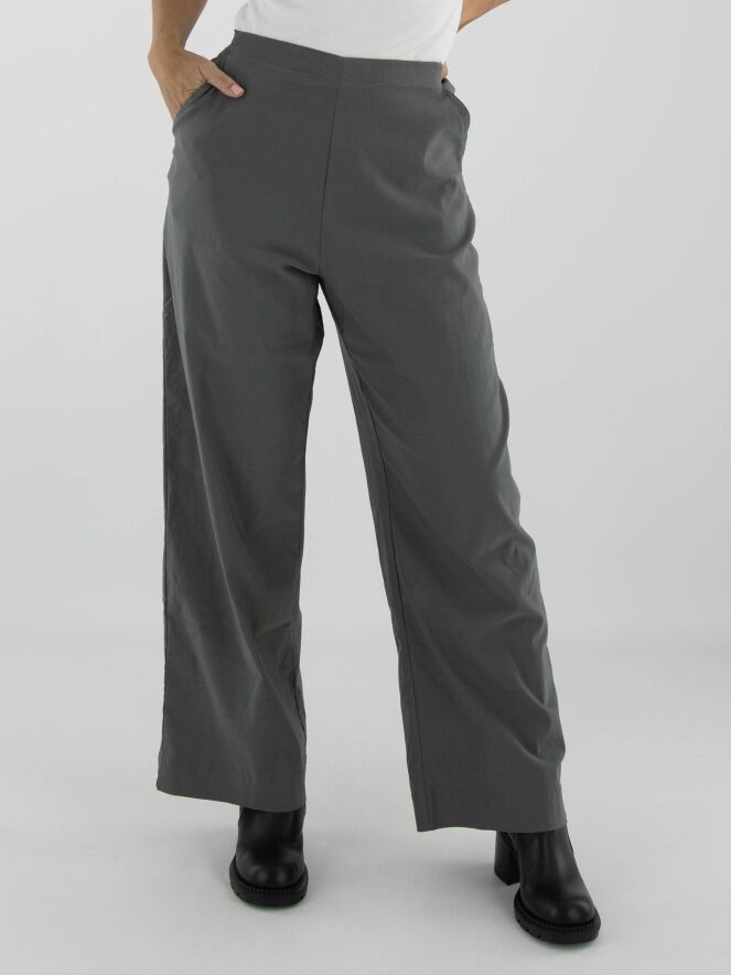 Wide-leg trousers from Rundholz Black Label in grey. The waistband is elasticated for added comfort. The trousers feature practical slit pockets and can be washed at 30 degrees.