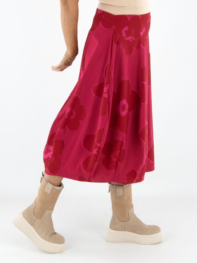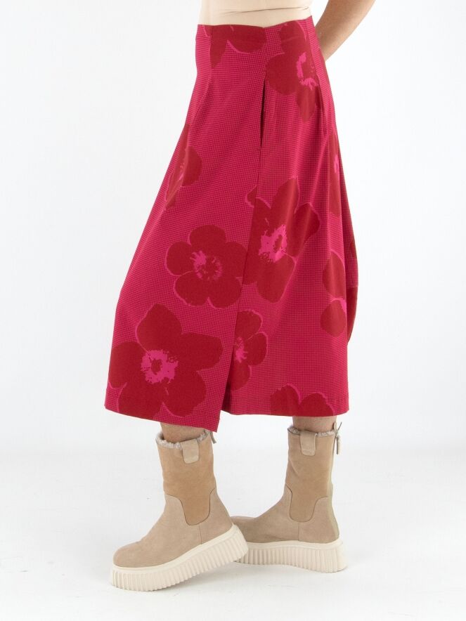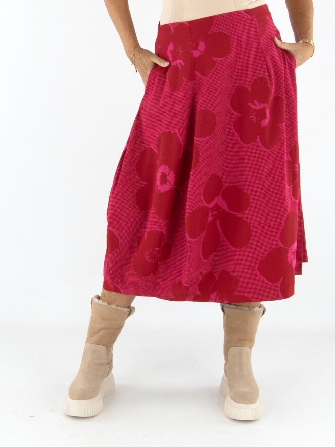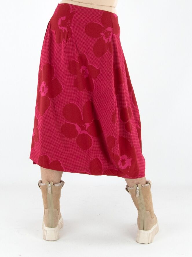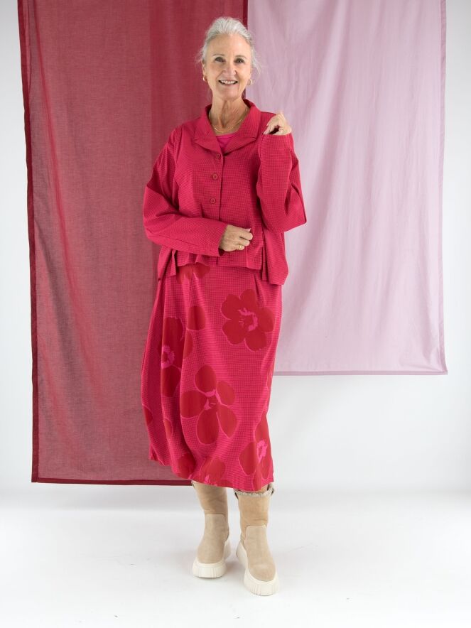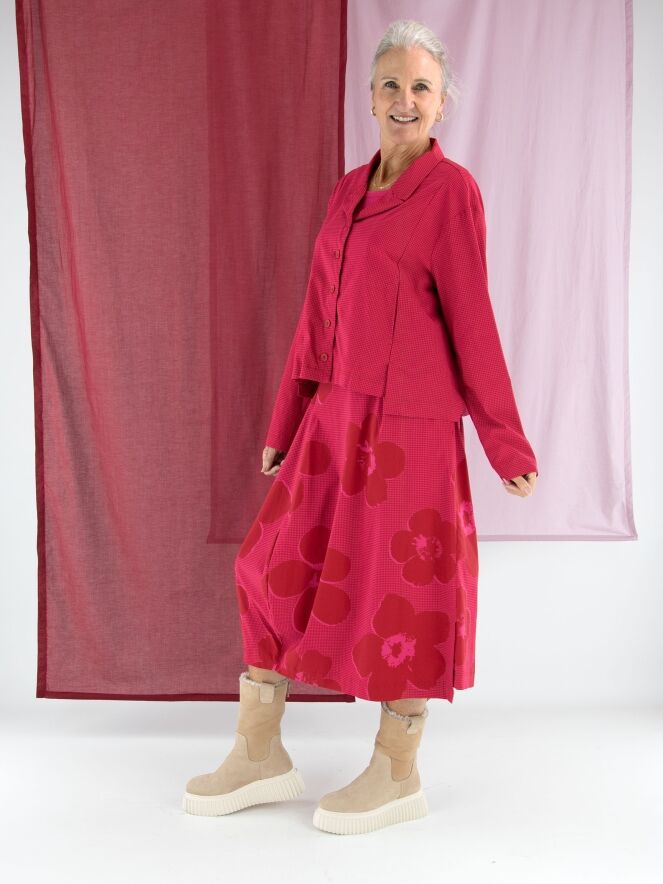 A skirt from Rundholz Black Label in a pied-de-coq print, overlaid with large flowers in red and pink. The elastic waistband ensures a comfortable fit. Slit pockets are placed just below the waistband. The skirt features a modern balloon shape and can be washed at 30 degrees.