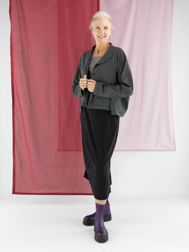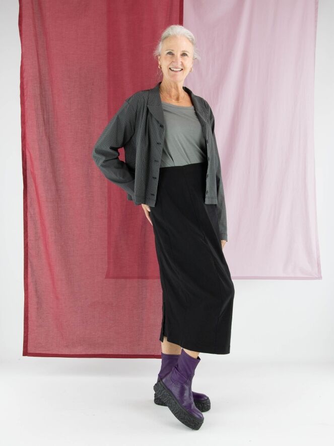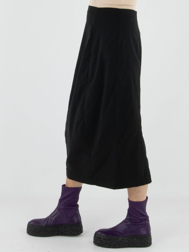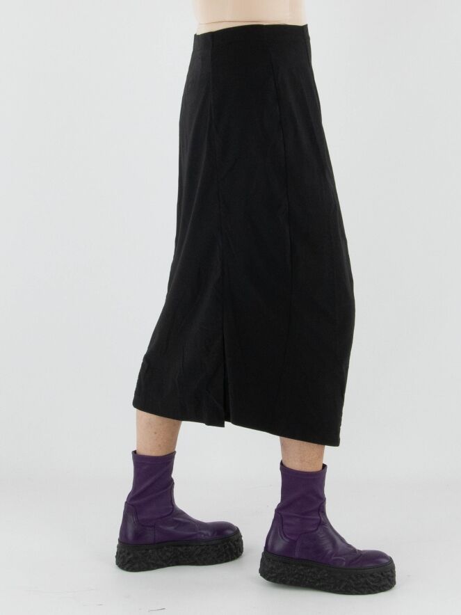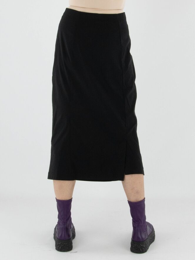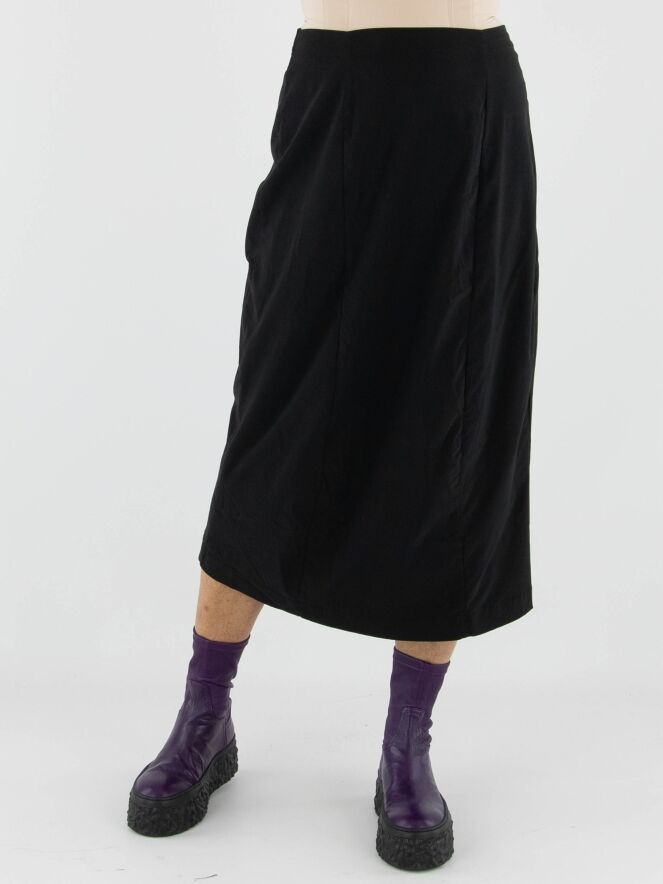 A skirt from Rundholz Black Label in black. The waistband is elasticated for added comfort. The skirt tapers towards the hem and is unlined, giving it a modern and minimalist look. This skirt can be washed at 30 degrees.