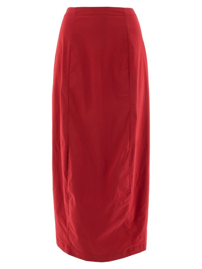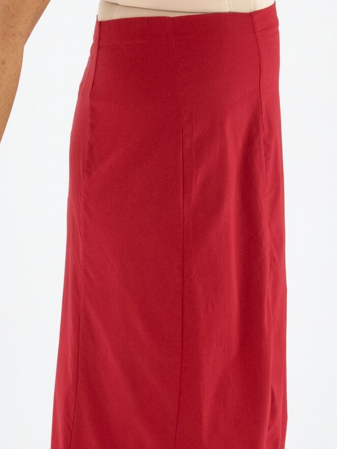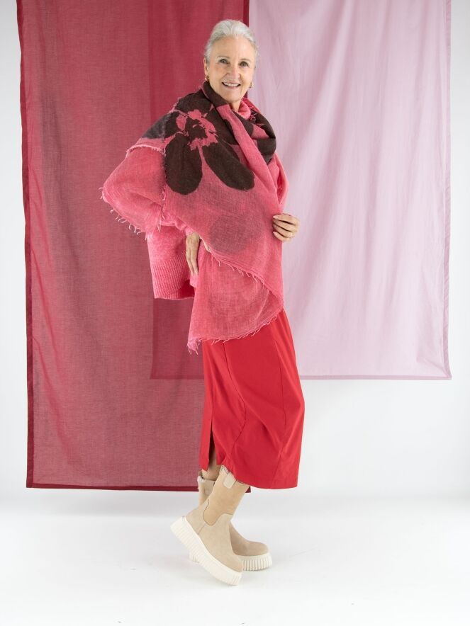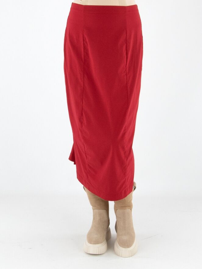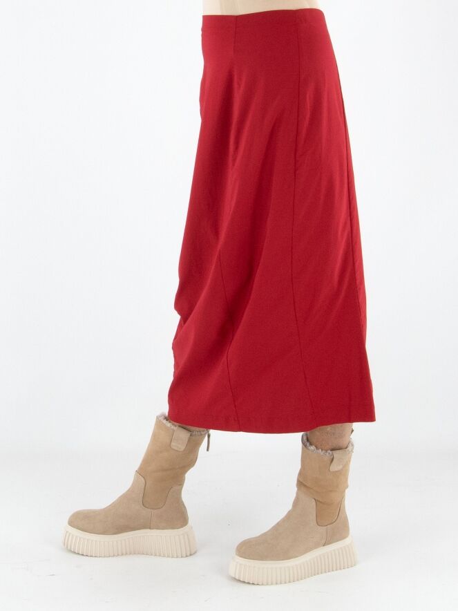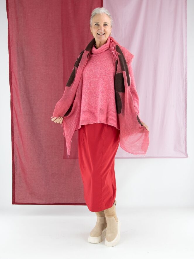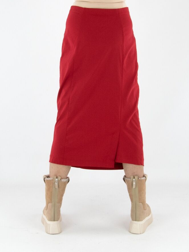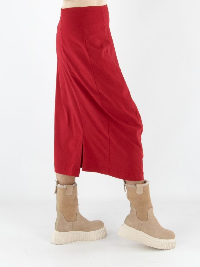 A skirt from Rundholz Black Label in red. The waistband is elasticated for added comfort. The skirt tapers towards the hem and is unlined, giving it a light and contemporary look. This skirt can be washed at 30 degrees.