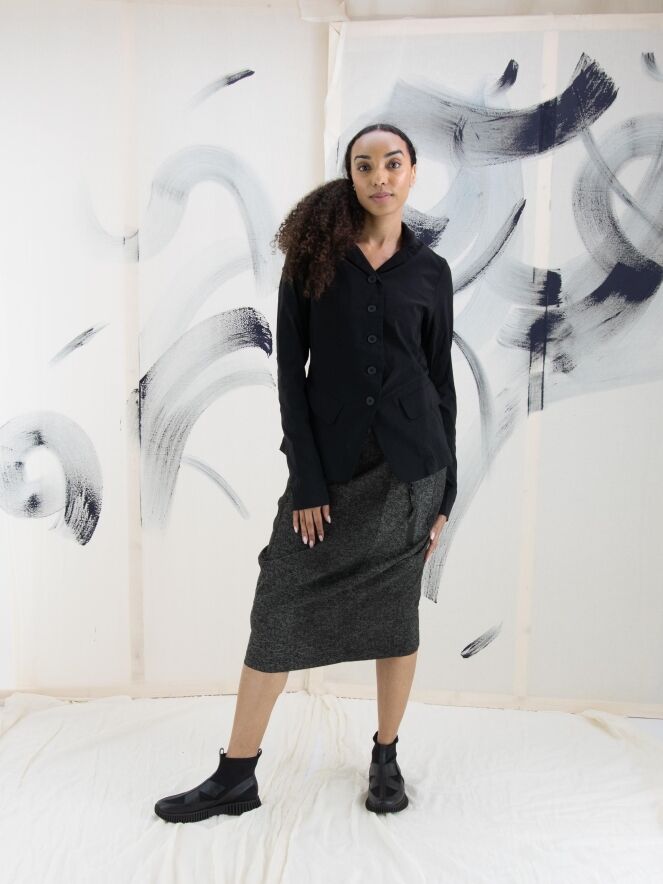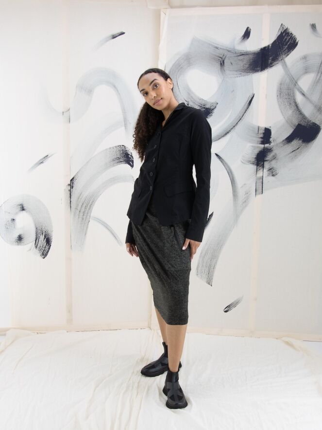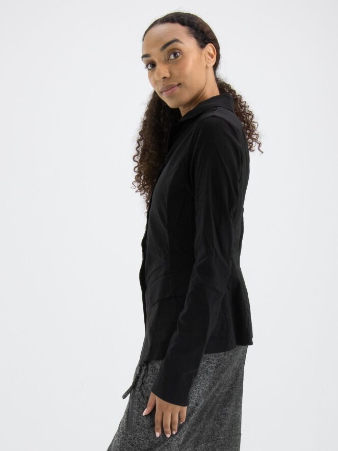 A blazer by Rundholz Black Label in black color. The blazer has a five-button closure, is unlined, and can be washed at 30 degrees.