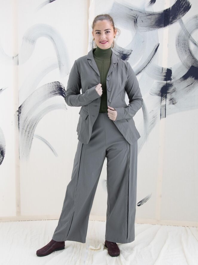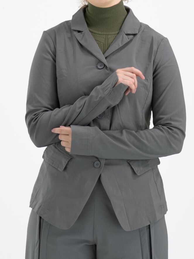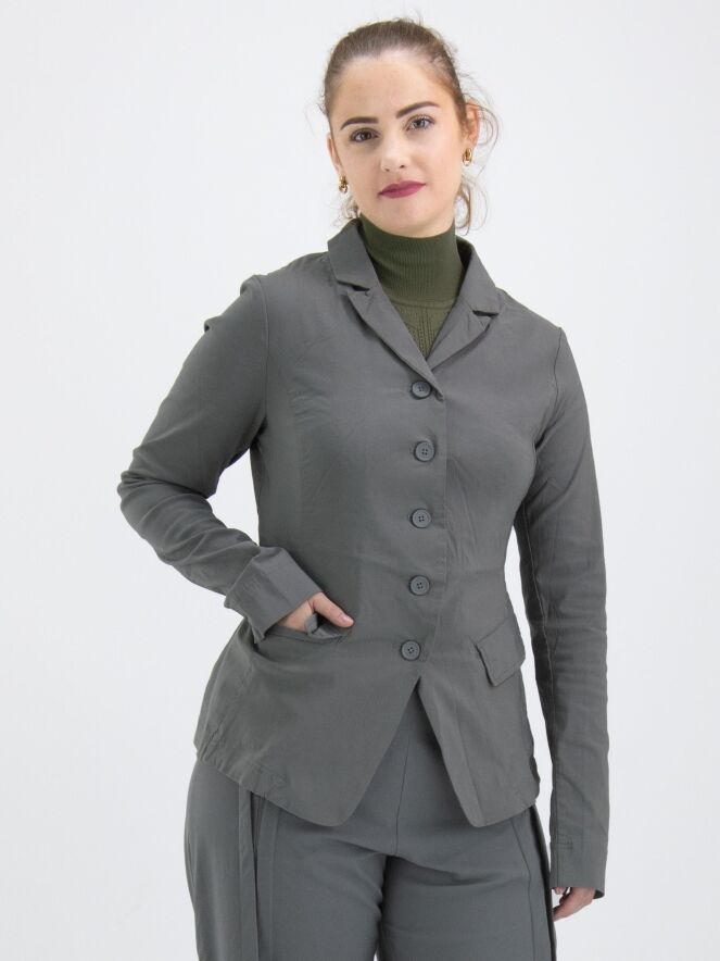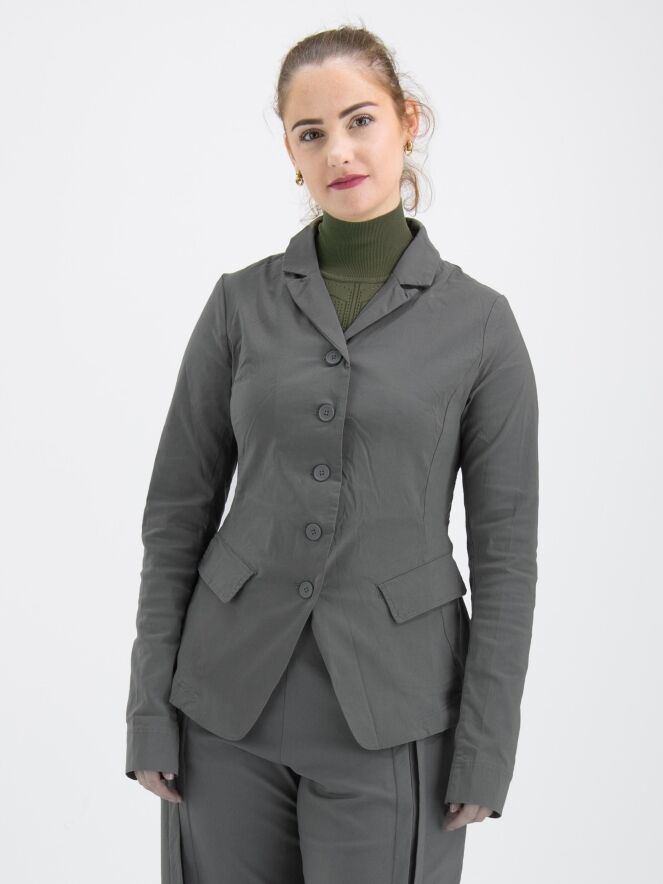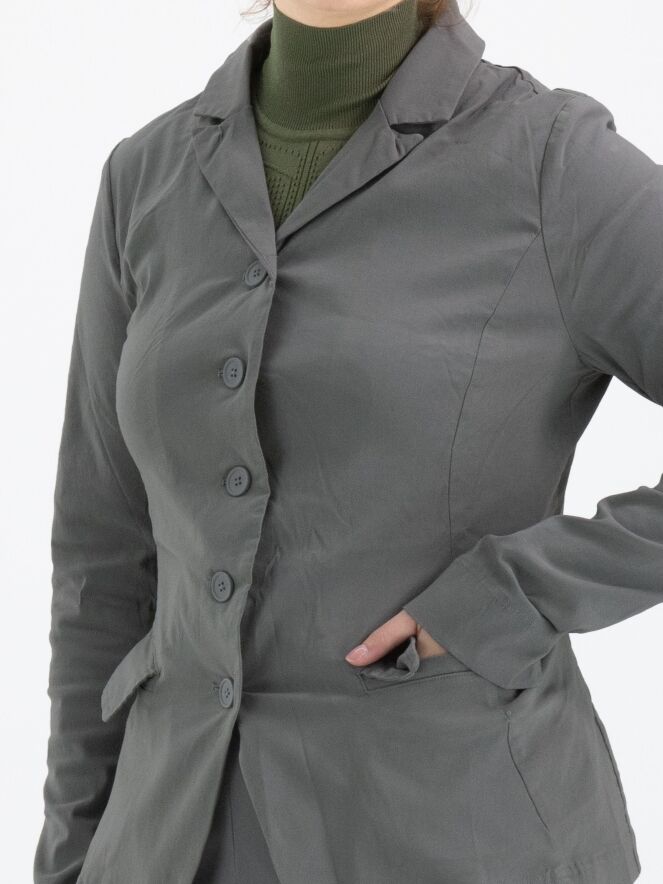 A blazer by Rundholz Black Label in gray color. The blazer has a five-button closure, is unlined, and can be washed at 30 degrees.