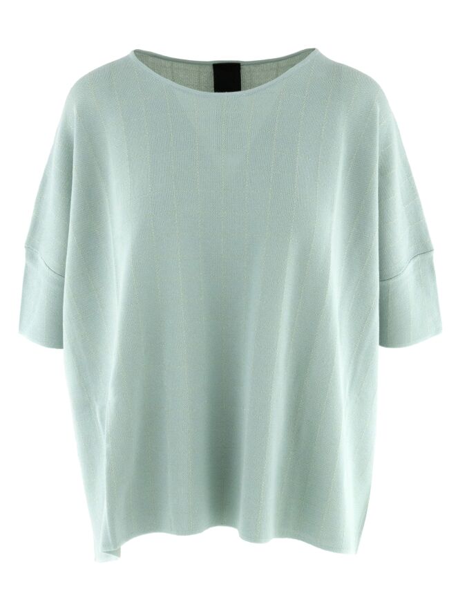 Wide pullover by Rundholz Black Label in a fresh mint green shade. A subtle block pattern woven with gold thread adds a refined and luxurious touch to the fabric. Designed with short sleeves and a round neckline, this exclusive designer piece can be washed at 30 degrees.