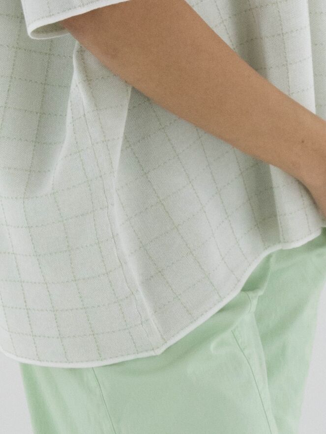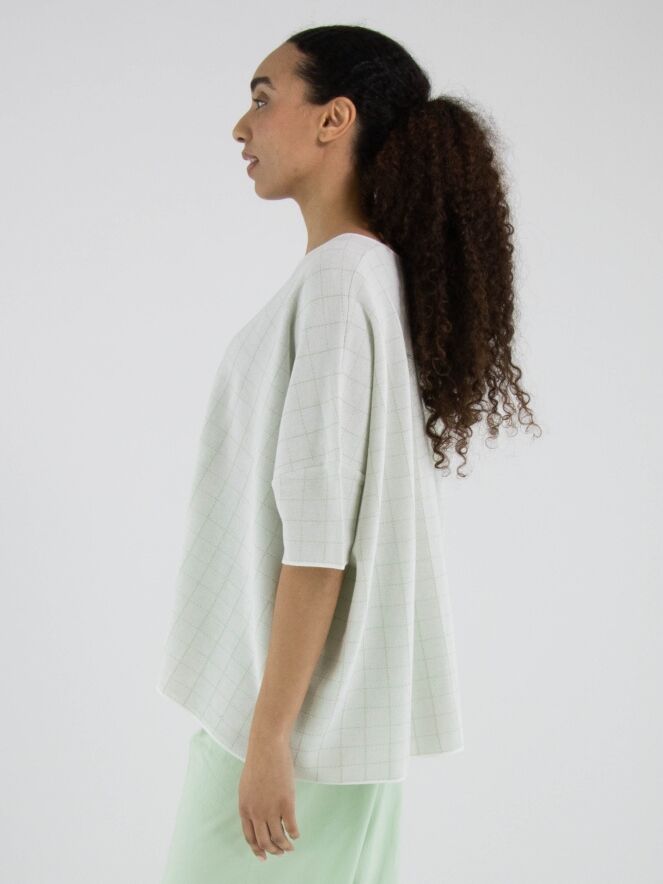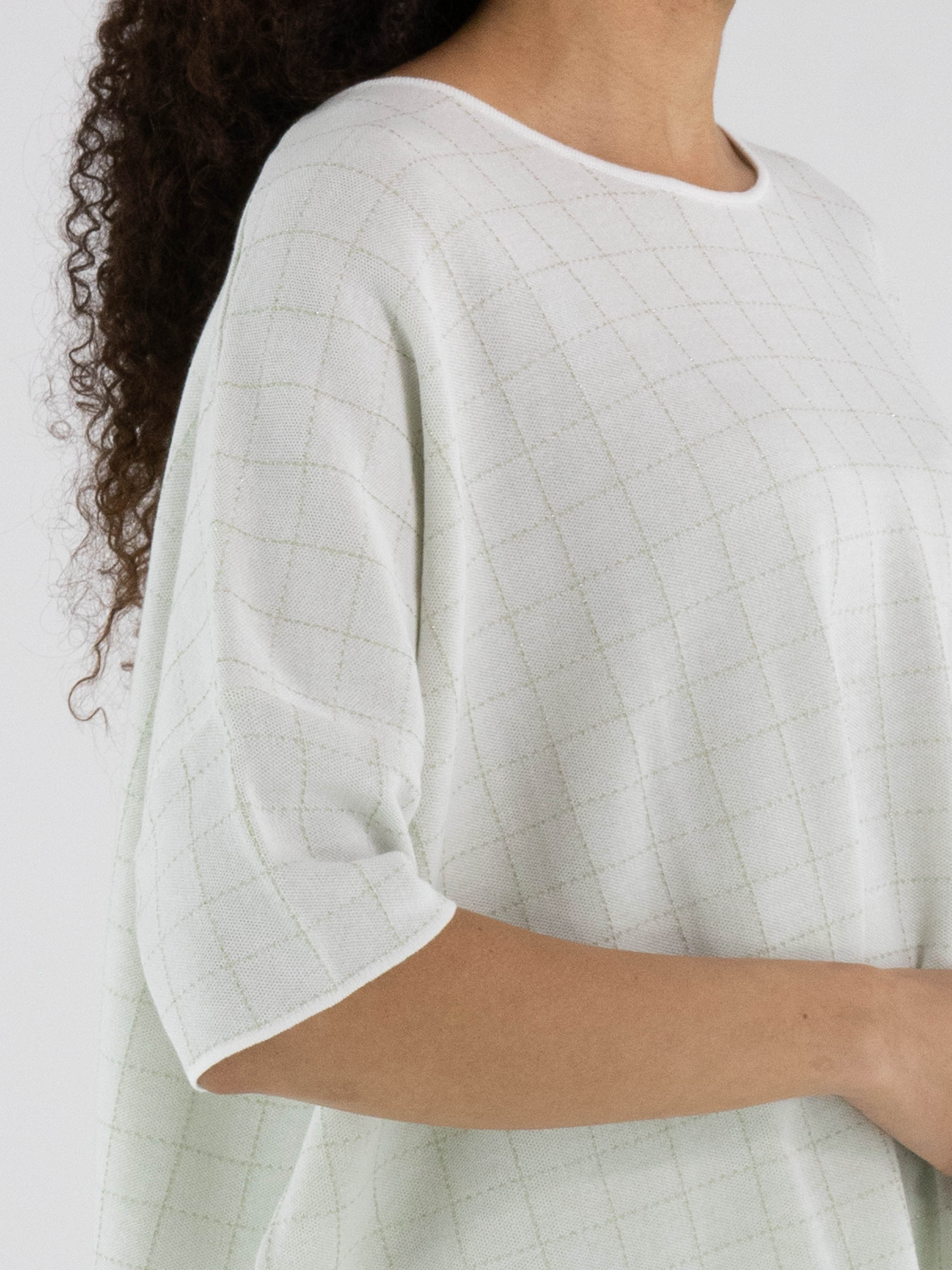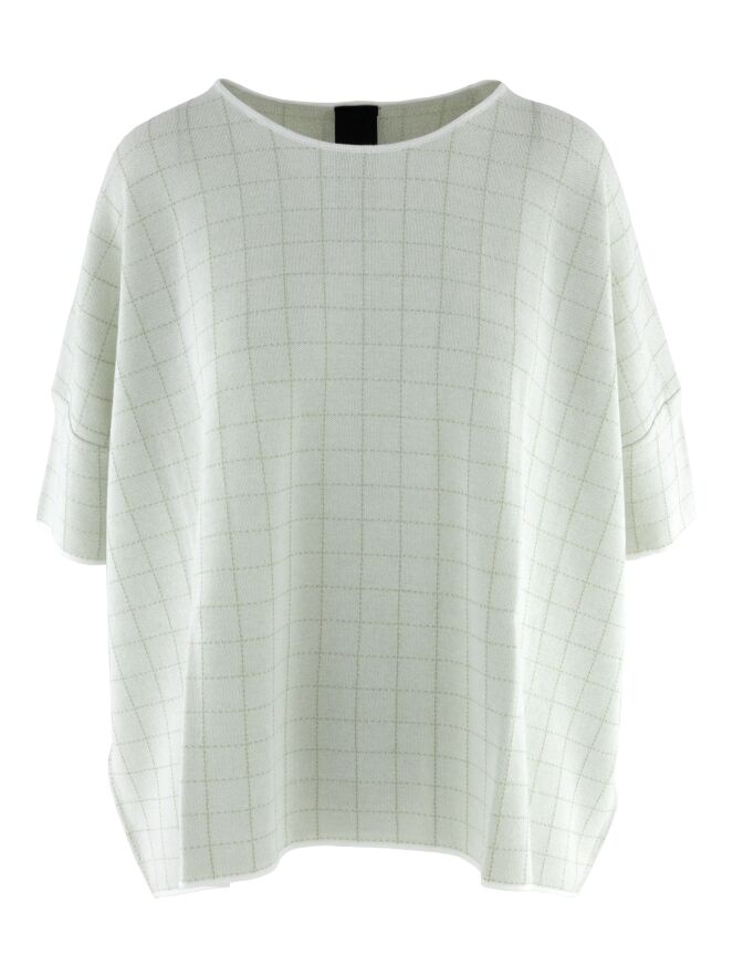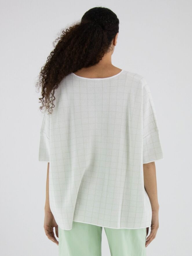 Wide pullover by Rundholz Black Label in an elegant off-white shade. A subtle block pattern woven with gold thread adds refined shimmer and a touch of understated luxury. Designed with short sleeves and a round neckline, this exclusive designer piece can be washed at 30 degrees.