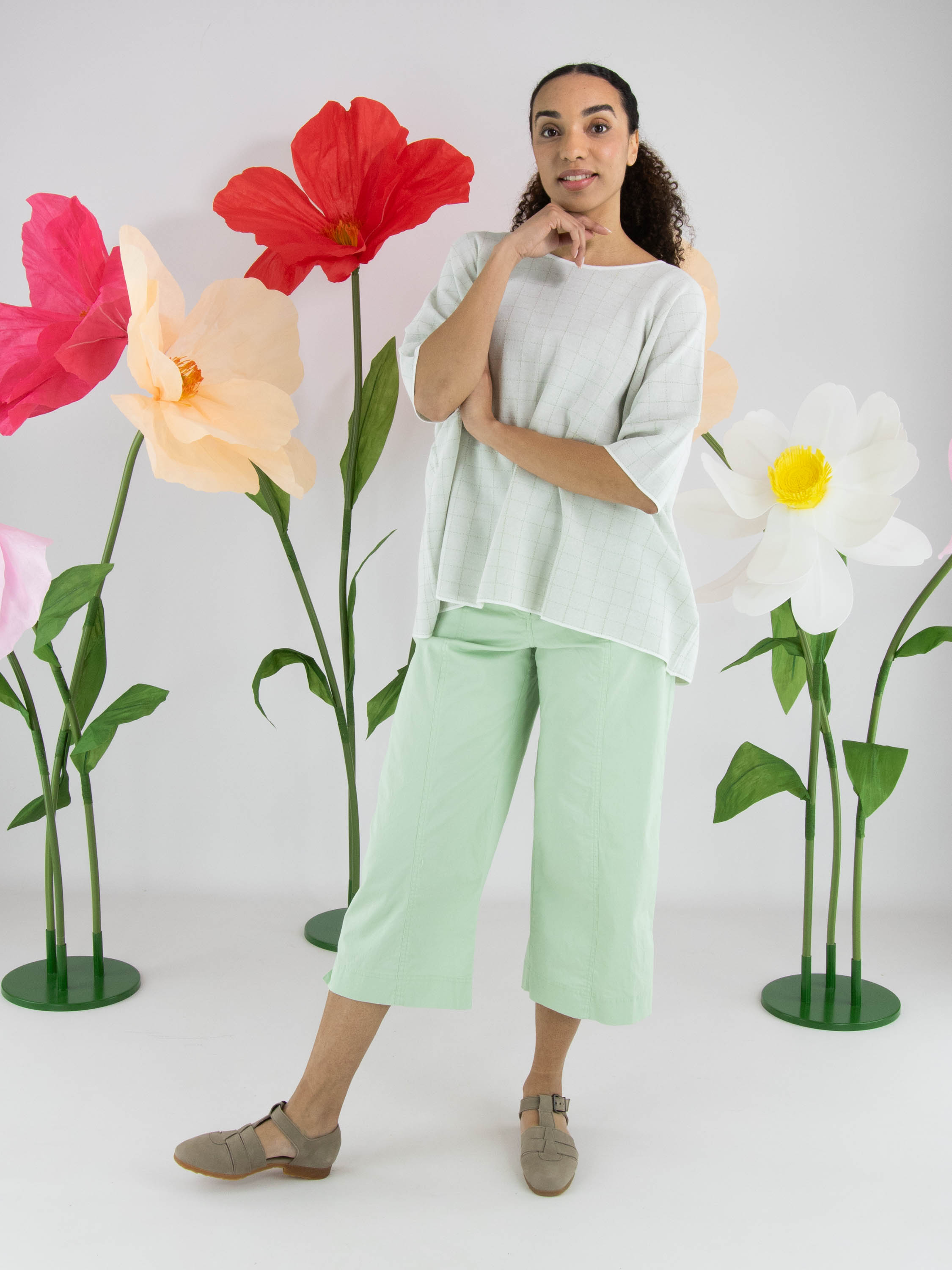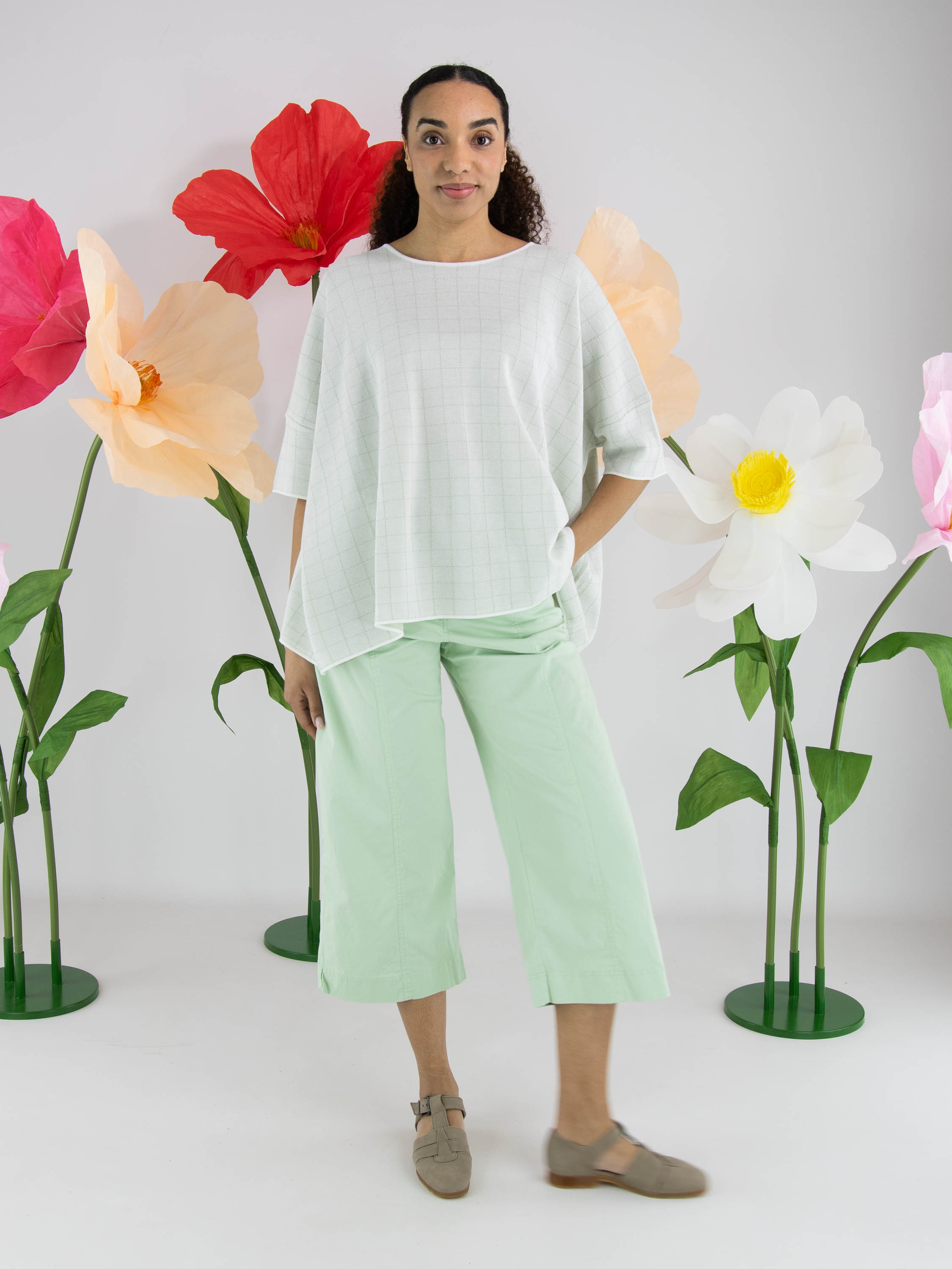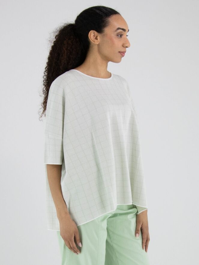Wide pullover by Rundholz Black Label in an elegant off-white shade. A subtle block pattern woven with gold thread adds refined shimmer and a touch of understated luxury. Designed with short sleeves and a round neckline, this exclusive designer piece can be washed at 30 degrees.