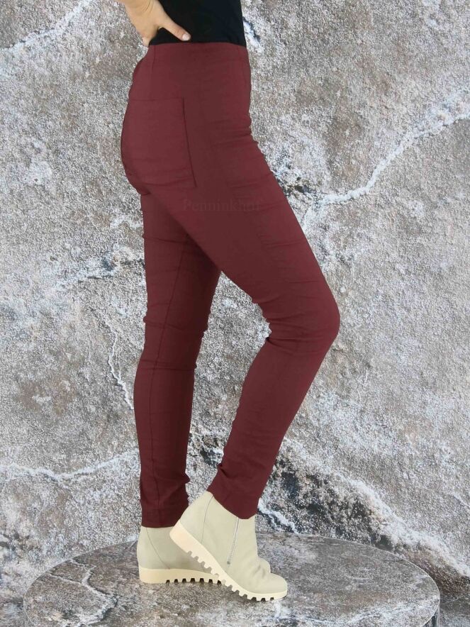 Pants by Rundholz Black label in a burgundy red color. At the waist is an elastic band. These pants can be washed at 30 degrees.