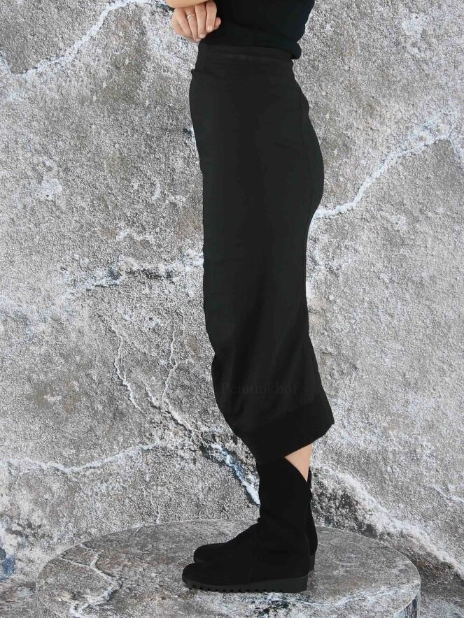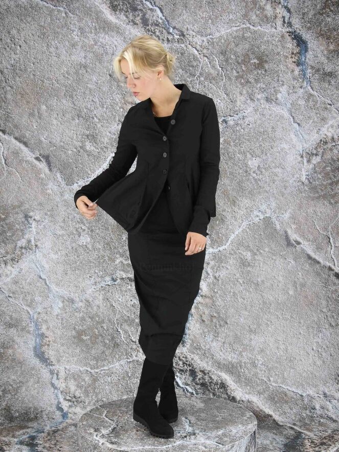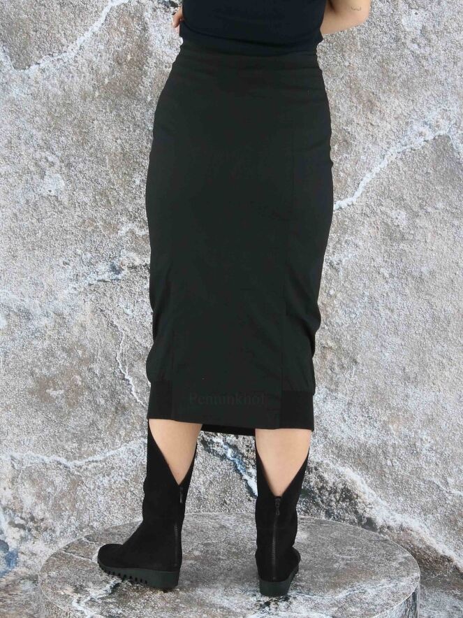 A skirt by Rundholz Black label in a black color. At the bottom is a wide finely ribbed tricot board on both sides. This skirt can be washed at 30 degrees.