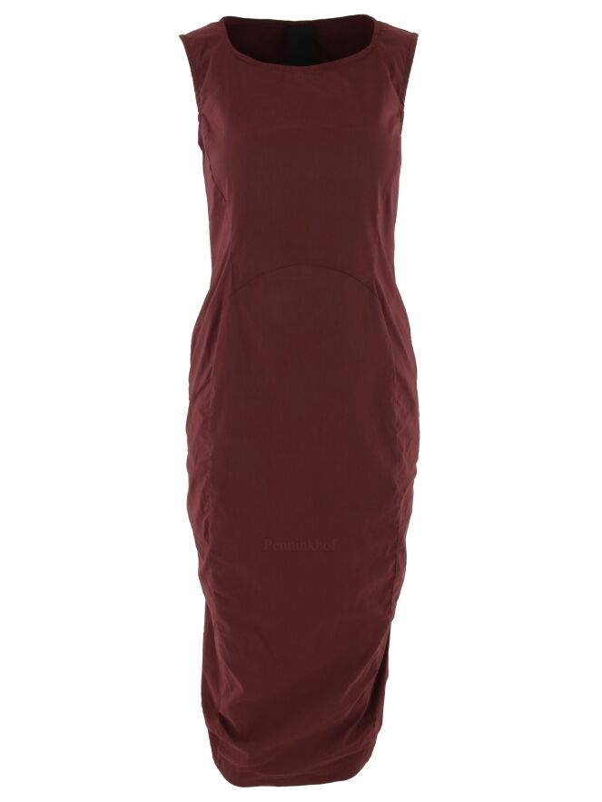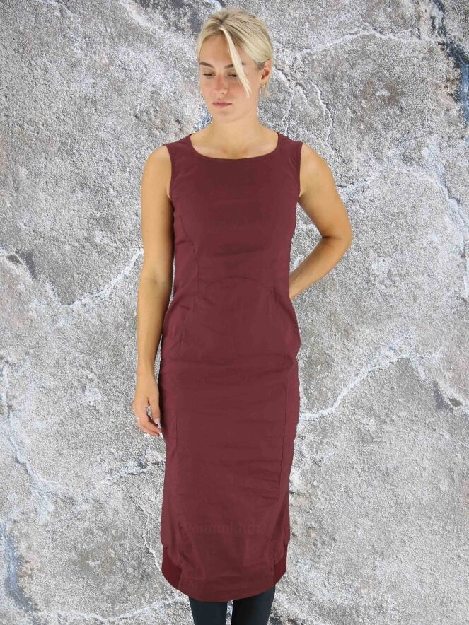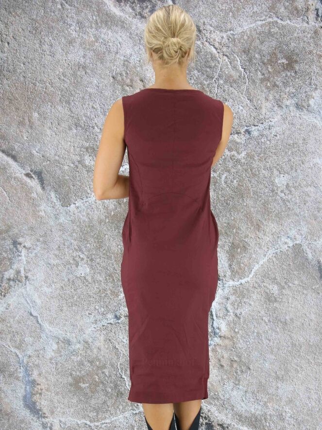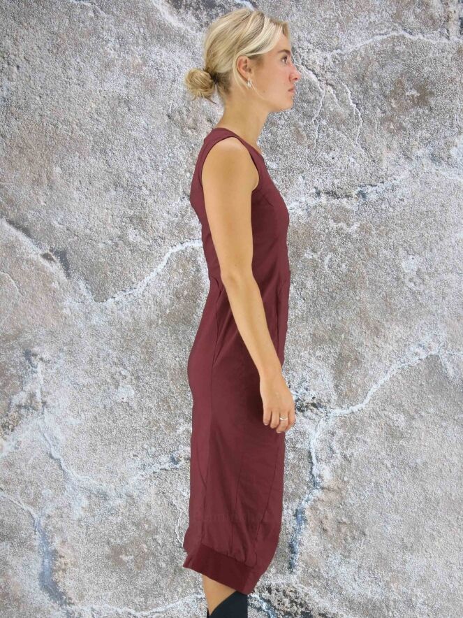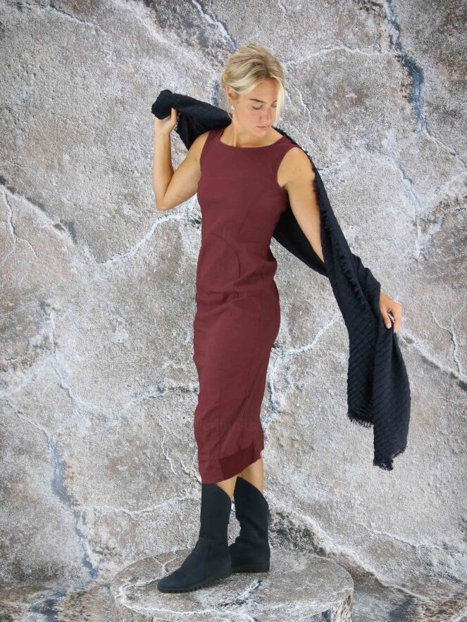 A fitted dress from Rundholz Black label in a burgundy red color. At the bottom is a wide finely ribbed tricot board on both sides. This dress can be washed at 30 degrees.