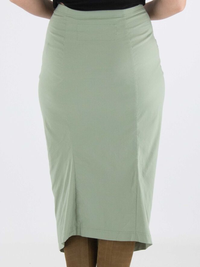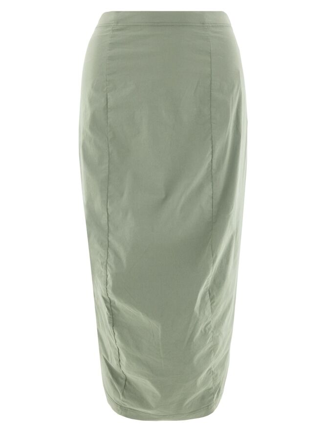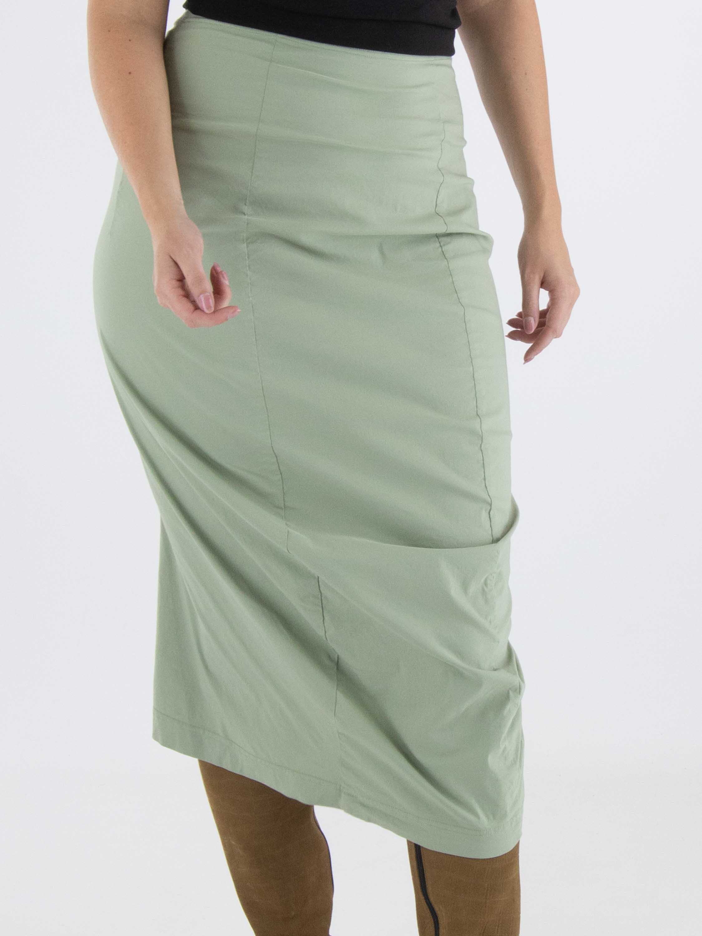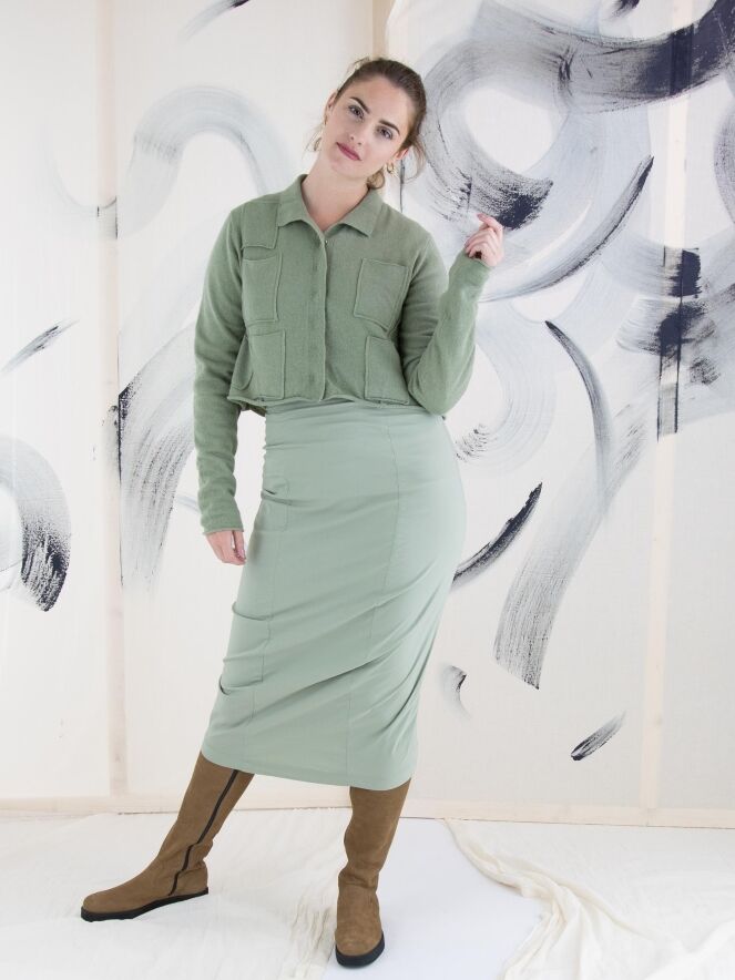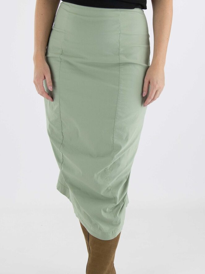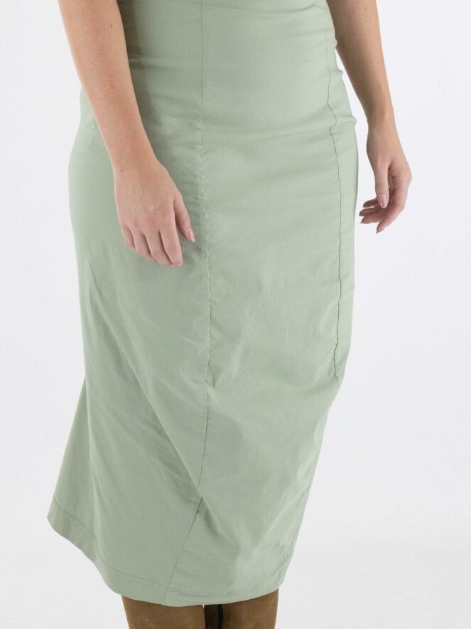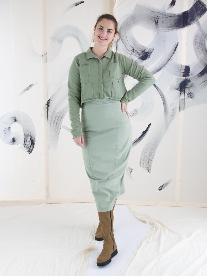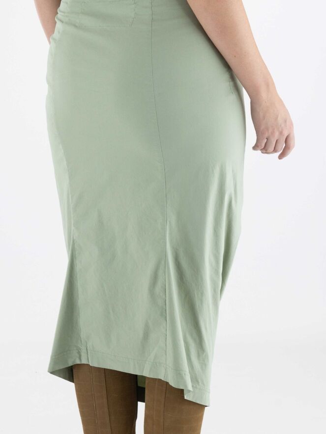 A skirt from Rundholz Black Label in soft pastel green. The waist of the skirt is elastic. The skirt tapers and is unlined. This skirt can be washed at 30 degrees Celsius.