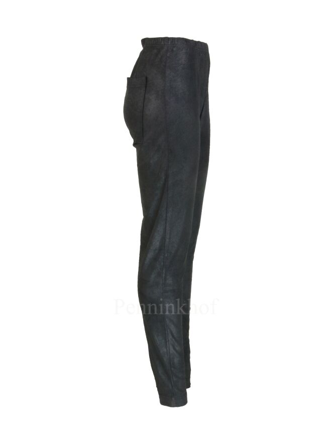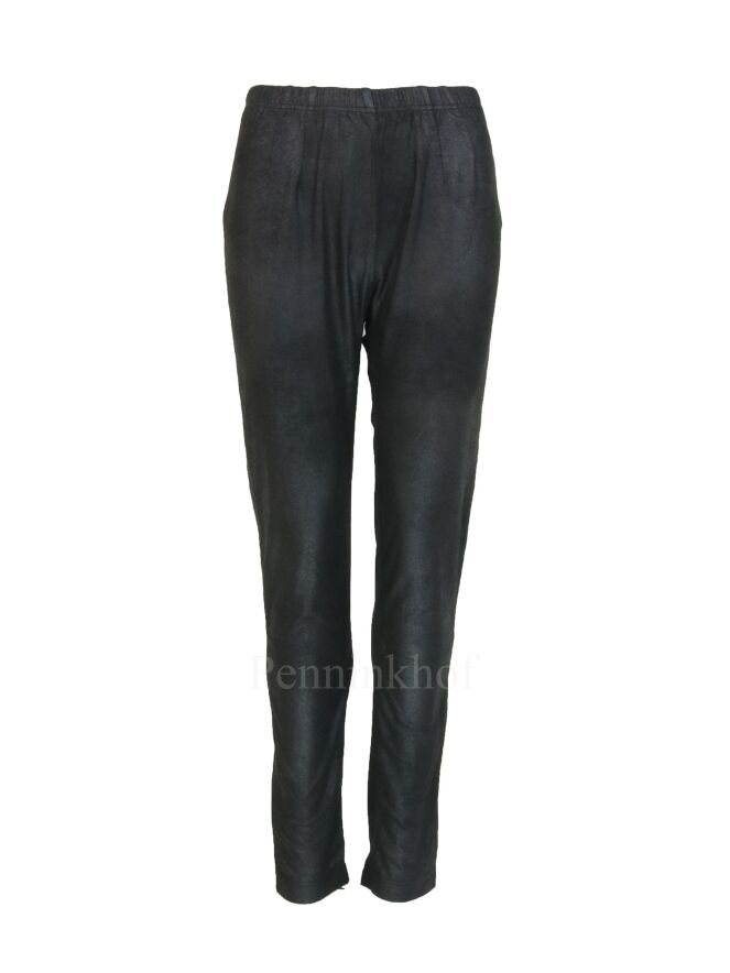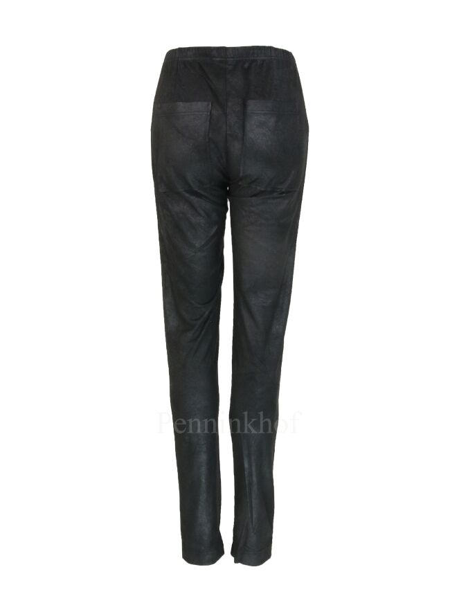 Rundholz pants in a wet look in black. At the waist is an elastic band with a finely pleated fabric. These pants can be washed at 30 degrees.
