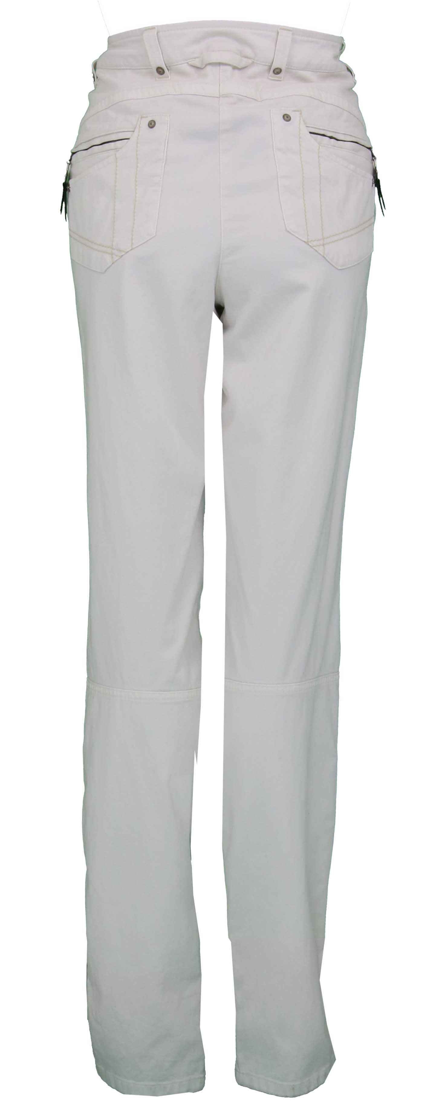 A Sportalm trousers in cream white color. The height of the knees is decorative stitching and the left upper leg is a decorative bag. The pants have pockets and can be washed at 30 degrees.