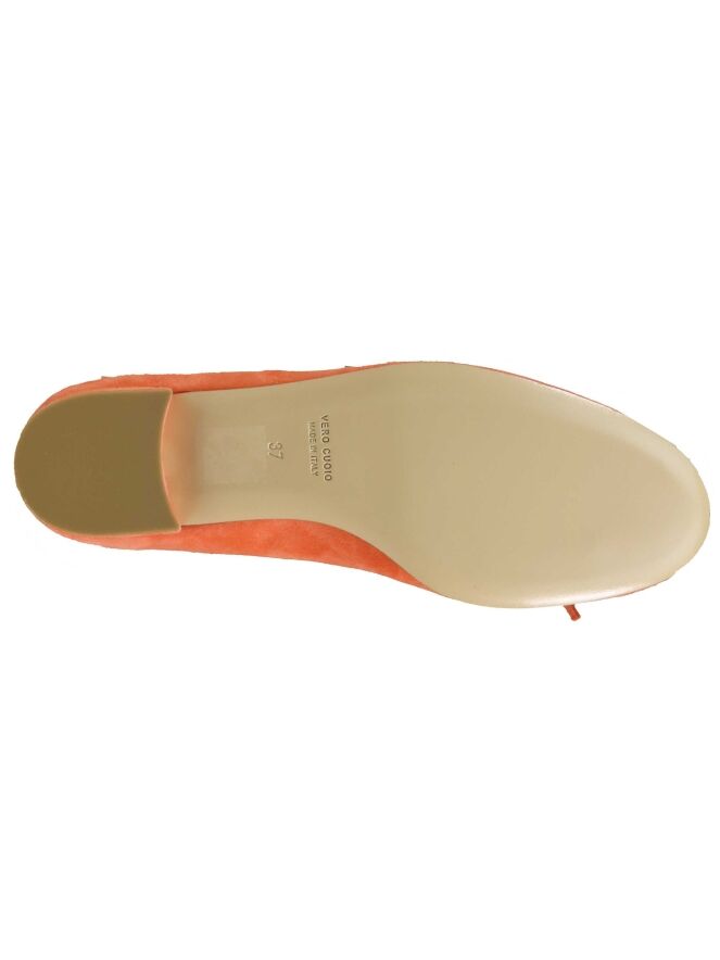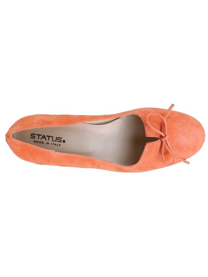 A ballerina from Status in a color pastel orange. On the forefoot is a bow. The inside is lined with leather.