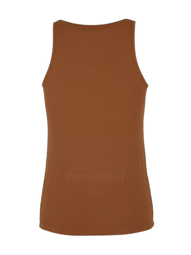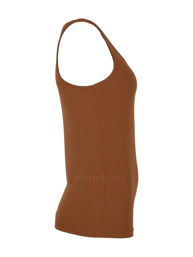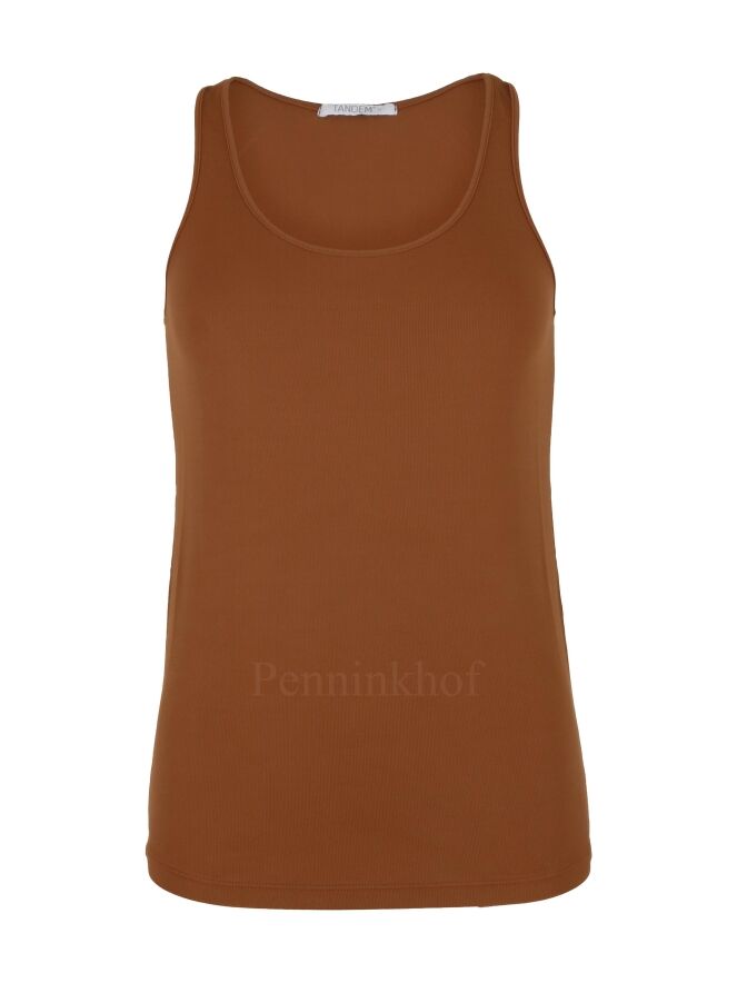 A top from Tandem in the color cognac. The fabric is finely ribbed. The top has a round neck and can be washed at 30 degrees.