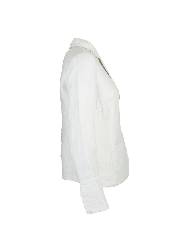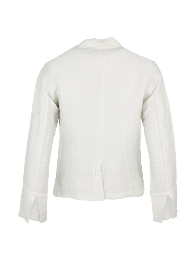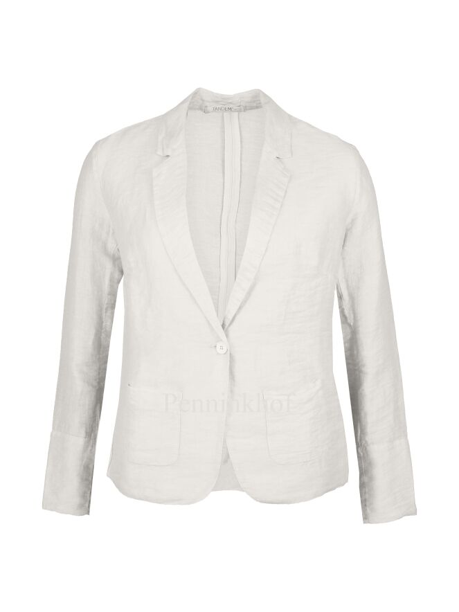 A blazer in a matt shiny fabric from Tandem in the color creamy white. The blazer has a one-button closure and is unlined. This blazer can be washed at 30 degrees.