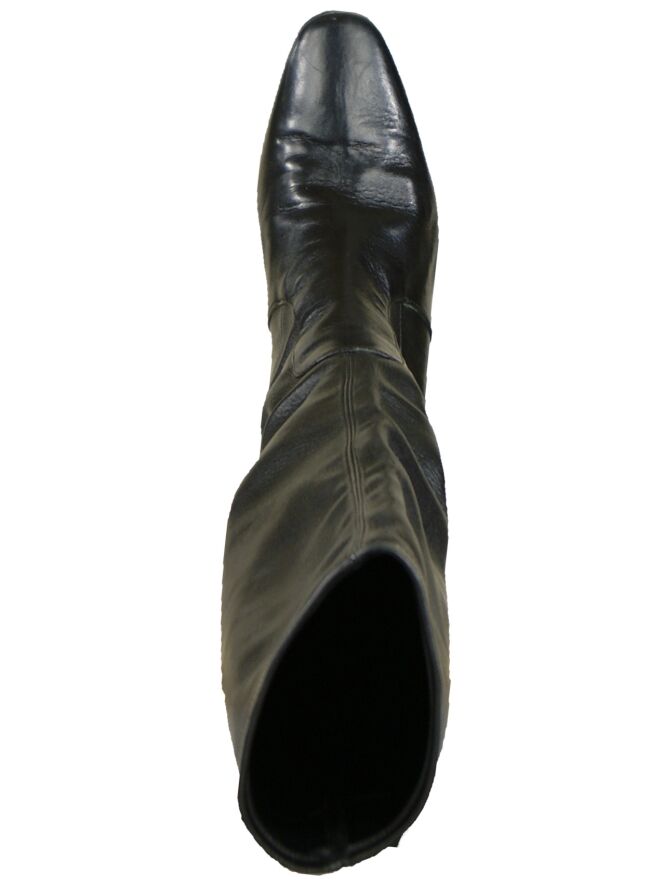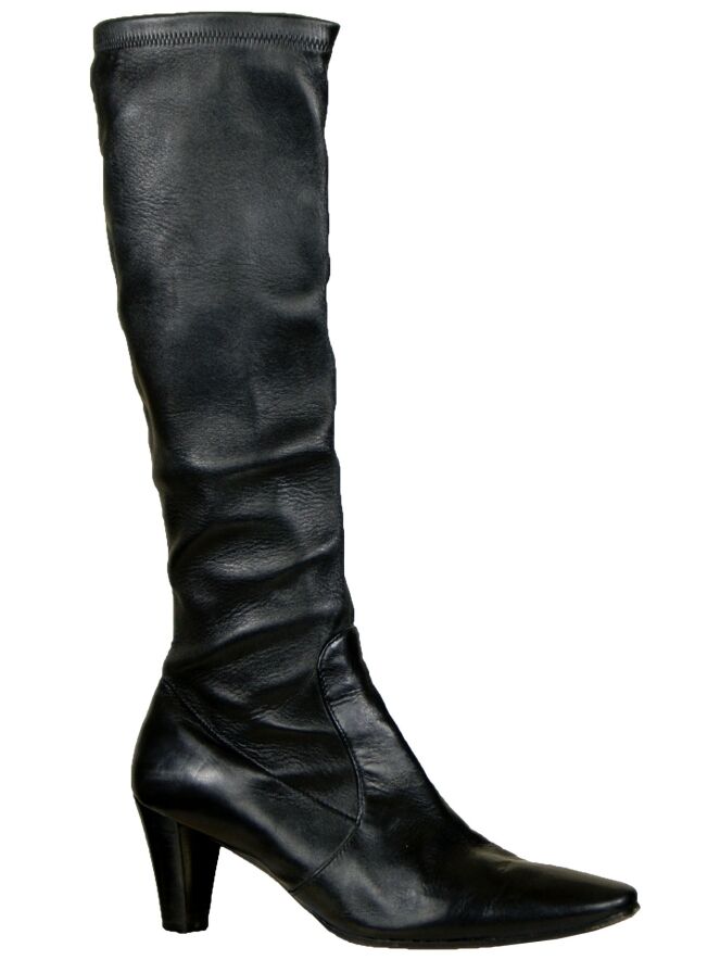 An elegant boot by the brand Voltan in the color black on an elegant heel of 7 cm high. The shaft is made of stretch leather and the circumference of the shaft is 34 cm. The length of the shaft is 37 cm. The boot has a slender forefoot.